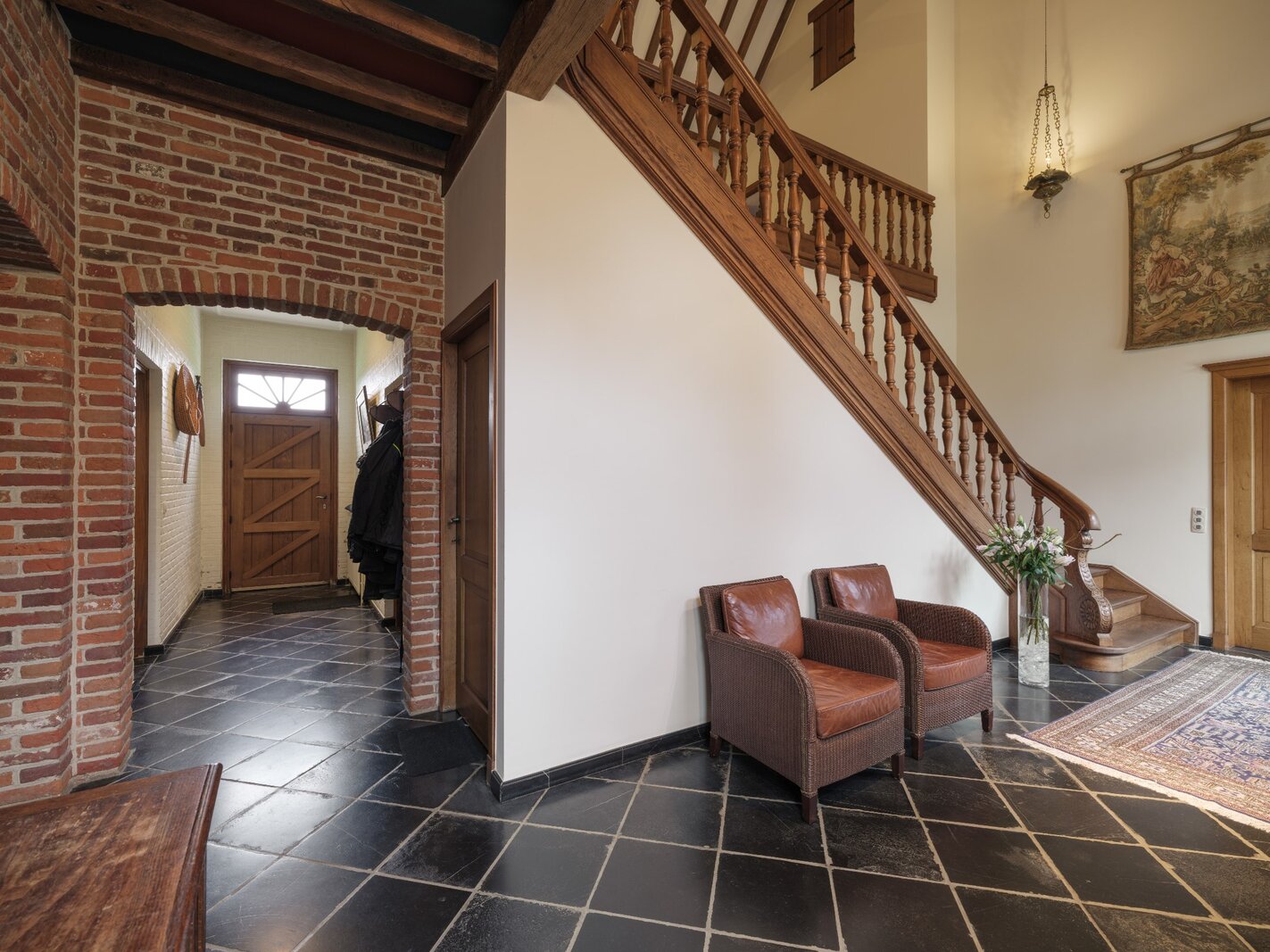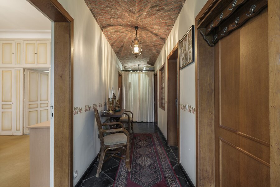 De woning heeft op dit moment twee aparte ingangen. De centrale ingang geeft uit op een imposante hal met gastentoilet. De hal geeft toegang tot de leefruimte met aparte eethoek. Dankzij de grote ramen is er een prachtig zicht over de wijnranken. Verder heeft de woning op het gelijkvloers nog een aparte keuken en toegang tot de ruime bergkelder. Op het eerste verdiep is er een imposante overloop met bureau, 3 slaapkamers, badkamer en nog bijkomende opbergruimte.