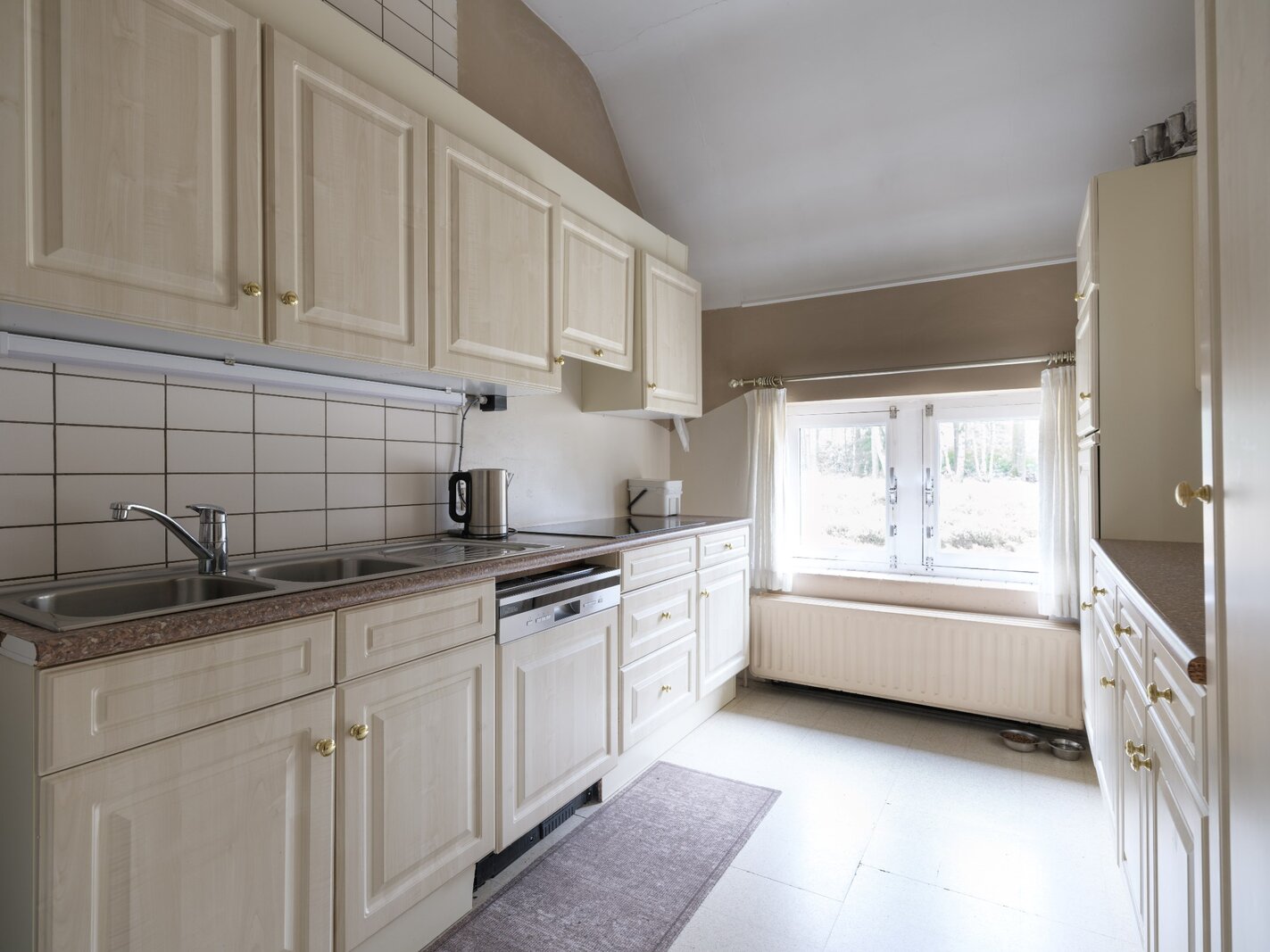 De tweede ingang geeft uit op een centrale gang die toegang geeft tot een tweede keuken en leefruimte met bureau. Verder is er hier ook een aparte badkamer en slaapkamer aanwezig.