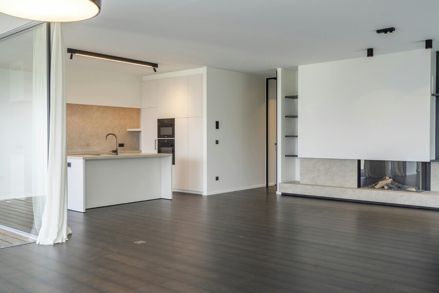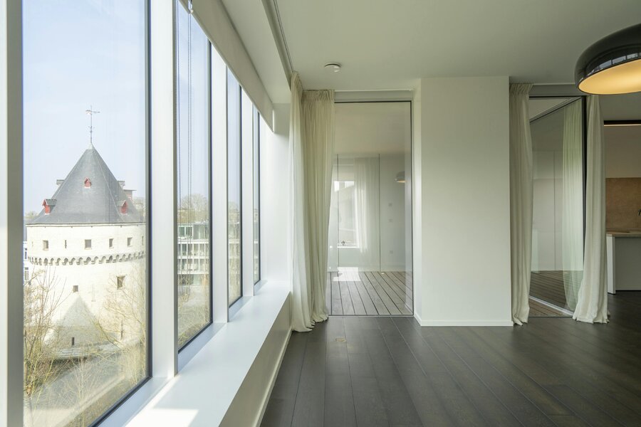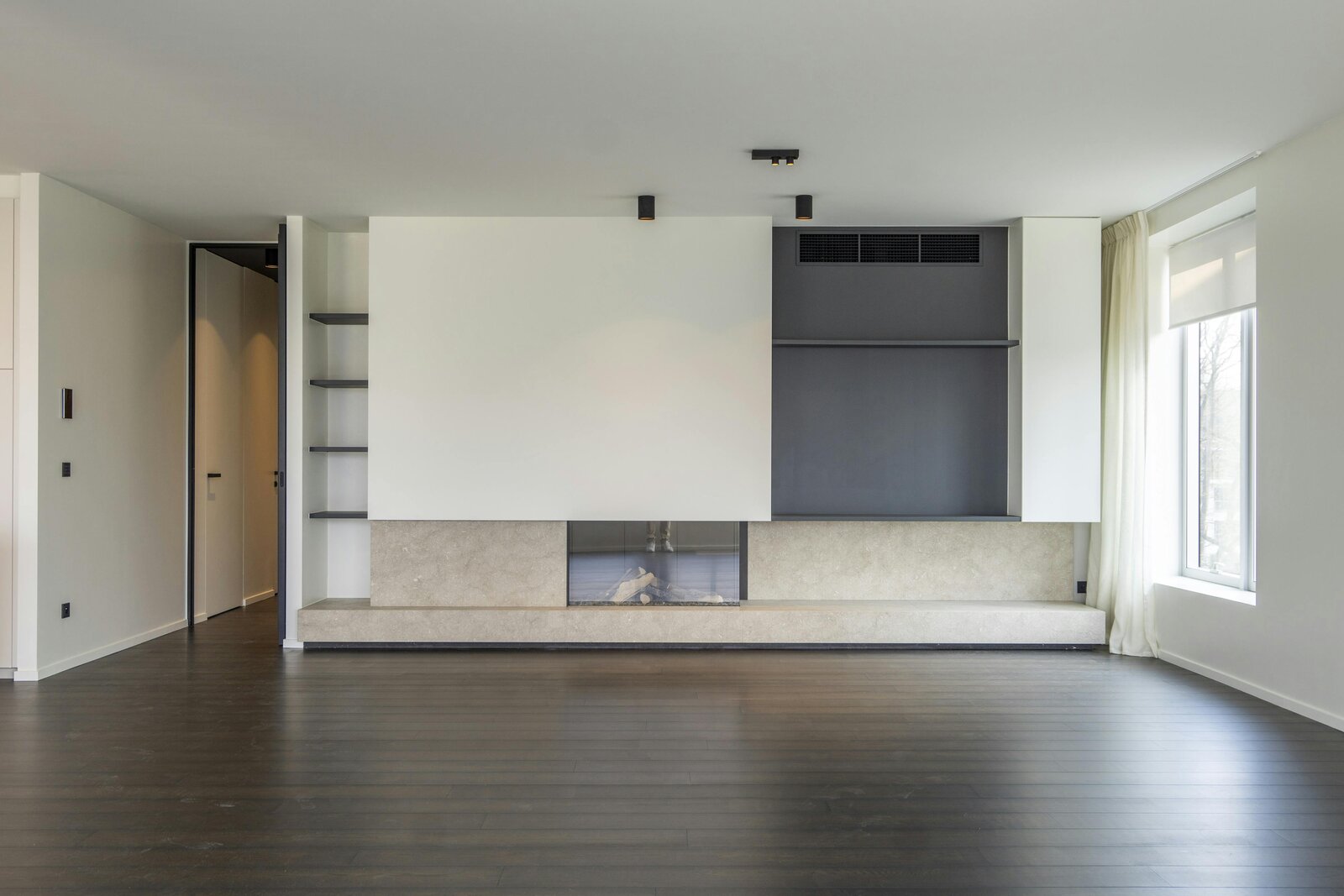 - spacious living space with a view of the Leie and Broel Towers and a cozy gas fireplace