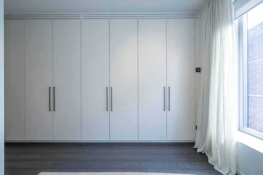 - sleek entrance hall with built-in wardrobes and guest toilet