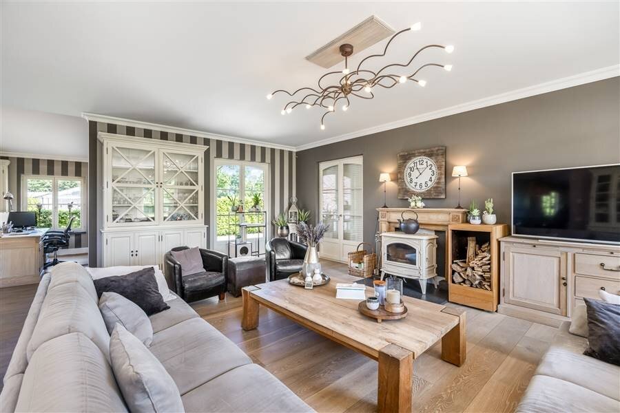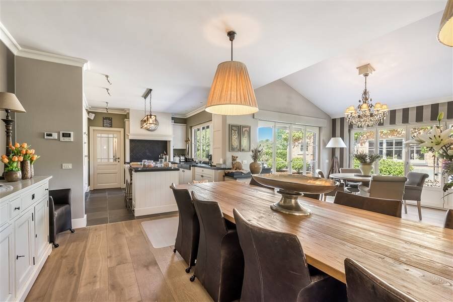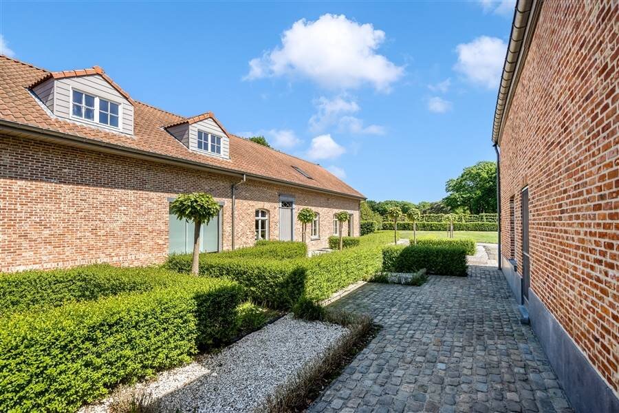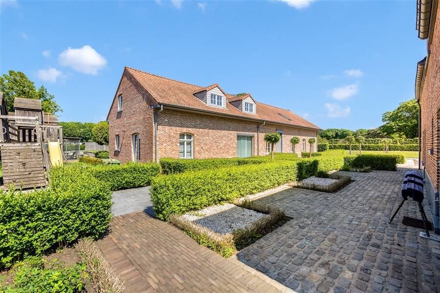 Knappe Architectuur: De woning schittert met zijn karaktervolle bakstenen gevel, klassiek gevormde daken en charmante luiken die de authenticiteit van het huis accentueren. Grote ramen zorgen ervoor dat er veel natuurlijk licht binnenkomt, wat de interieurervaring warm en uitnodigend maakt.