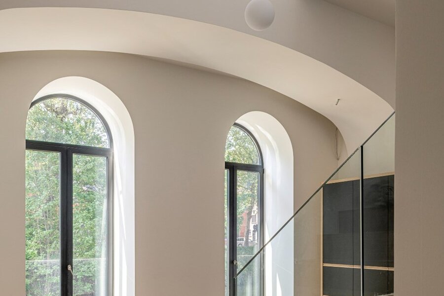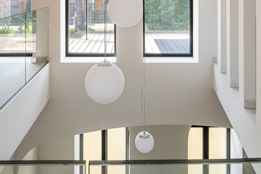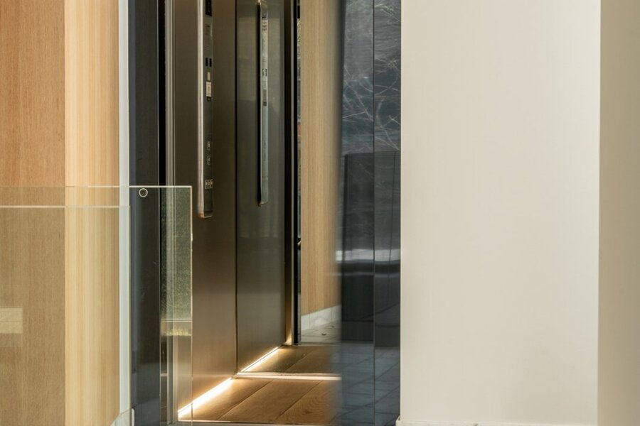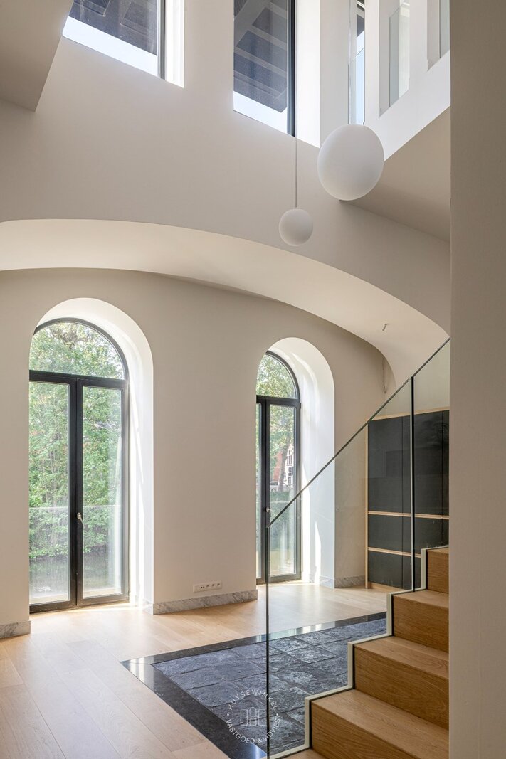 Via de elegante trap of privatieve personenlift komt u op de onderliggende etage. Deze verdieping zweeft boven het waterniveau en geniet van plafondhoogtes tot meer dan 4 meter.