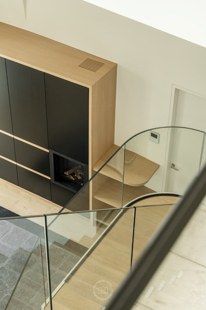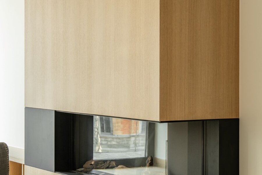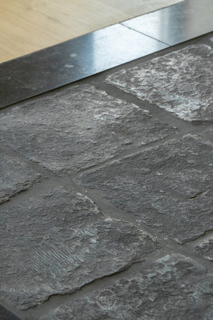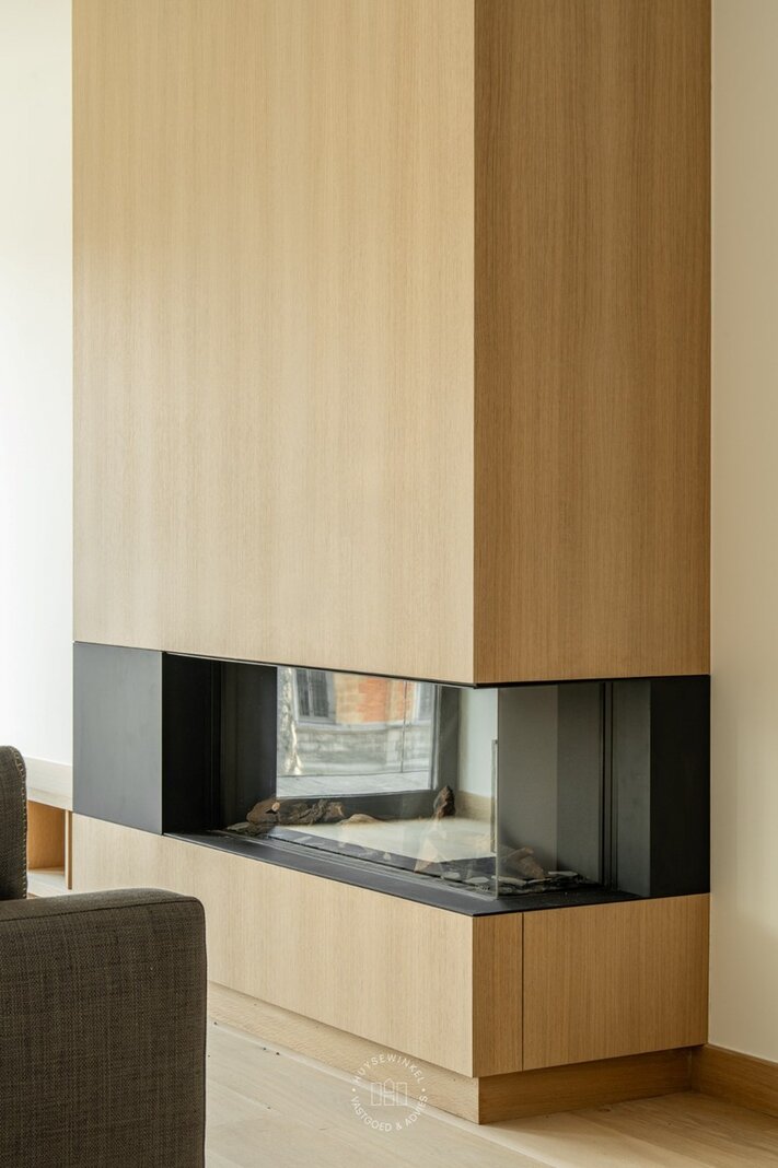 De tweede zithoek is tevens voorzien van een ingemaakte kastenpartij met gashaard en wordt gekenmerkt door zijn authentiek recuperatiesteen. Dit is de originele stenen vloer uit het oorspronkelijke graanhuis aan de waterkant.