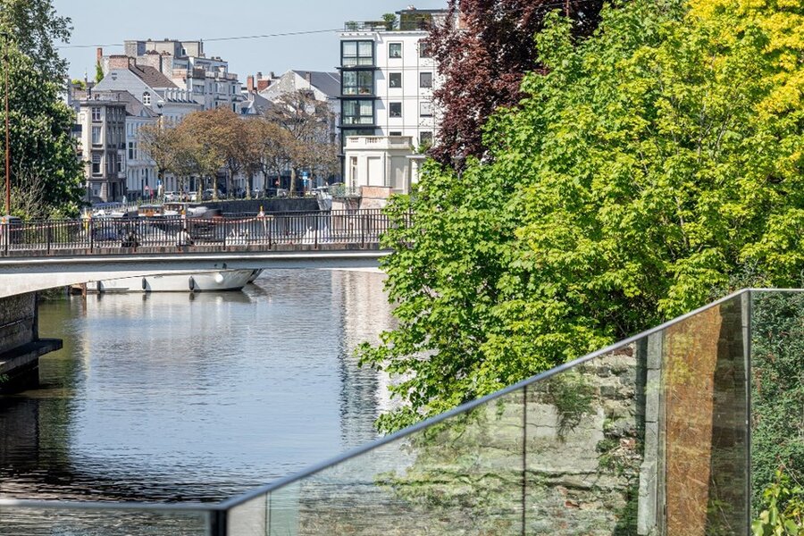 Hier kan u ten volle kan genieten van het rustgevende waterzicht over de Leie en de achterliggende beschermde Bijlokesite.