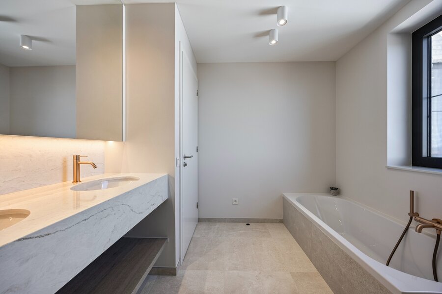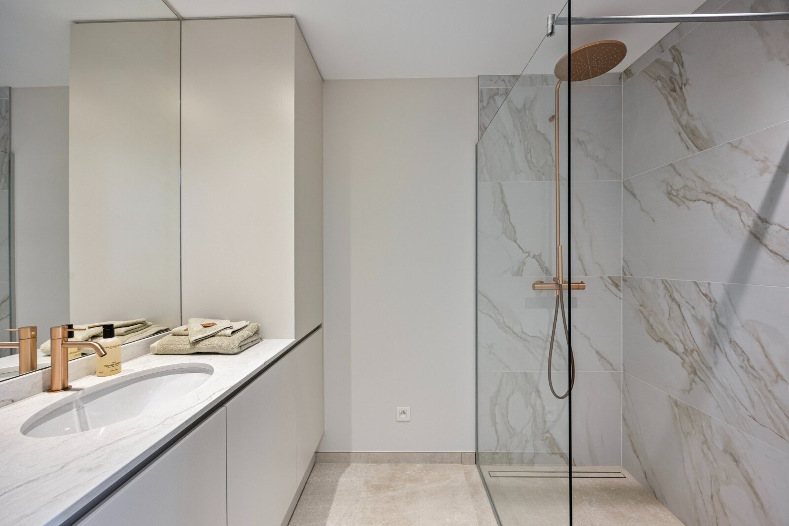 - Zeer ruime dubbele garages voorzien van privatieve elektrische laadpalen en toegankelijk via auto-fietslift;