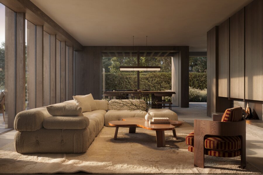Upon entering the house you are welcomed in a spacious entrance hall with checkroom and guest toilet. The southwest-oriented living space is a true showpiece: a generous sitting room, a stylish open kitchen with cooking island and a light-filled dining room together form one open unit. Large windows provide abundant natural light and a beautiful view of the perfectly landscaped garden.