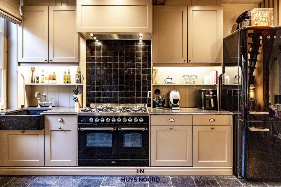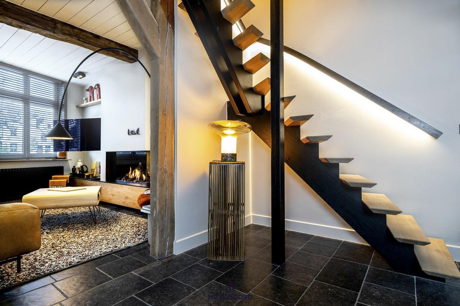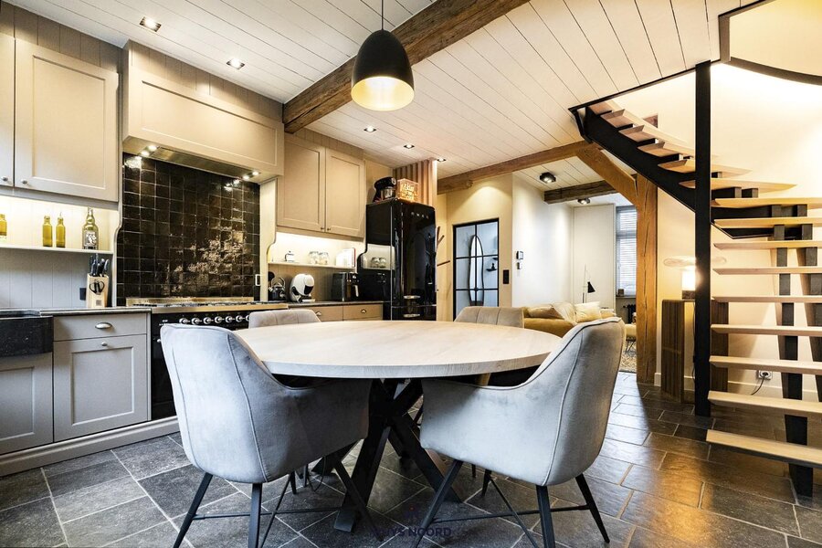 Upon entering, you are welcomed into a warm and inviting living area with an adjoining open-plan kitchen, where authenticity and comfort take centre stage. The beautiful, elegant staircase is a true eye-catcher within the home.
