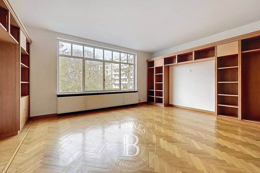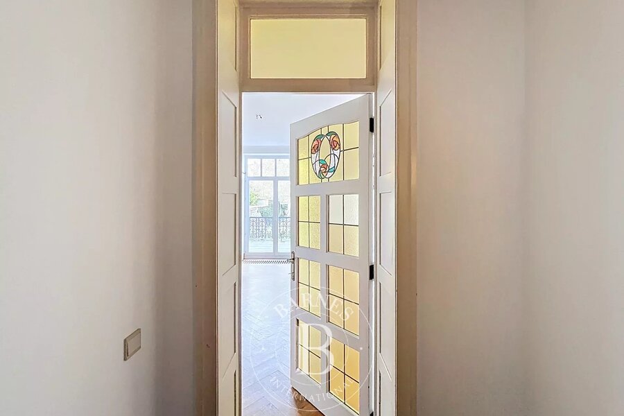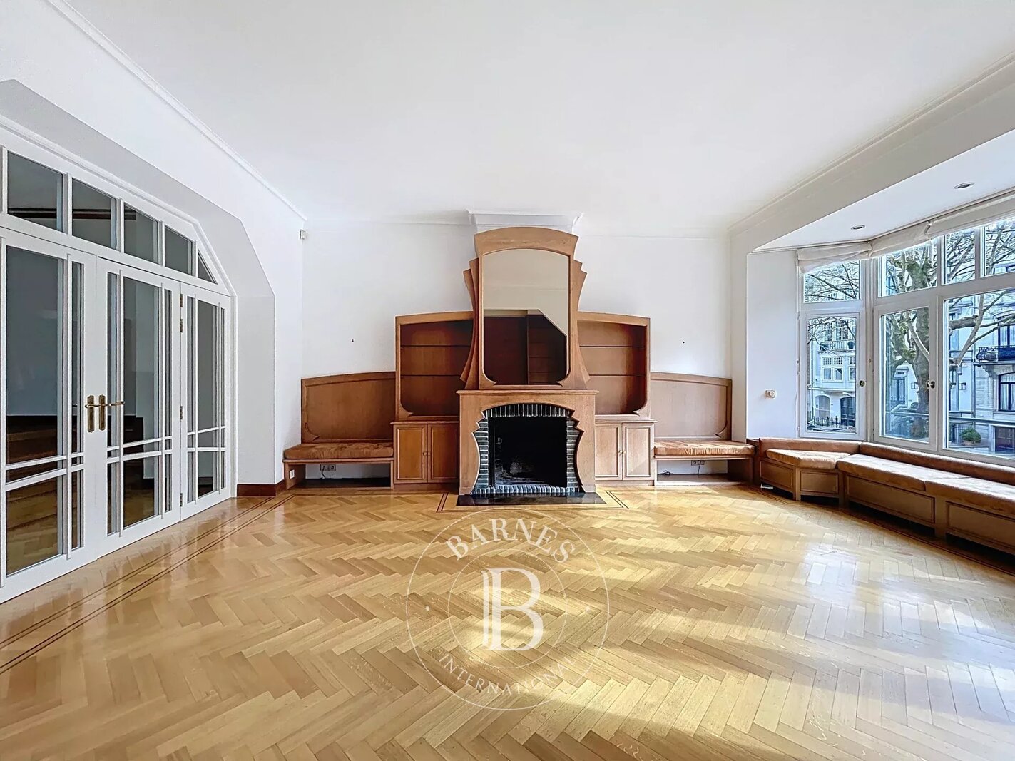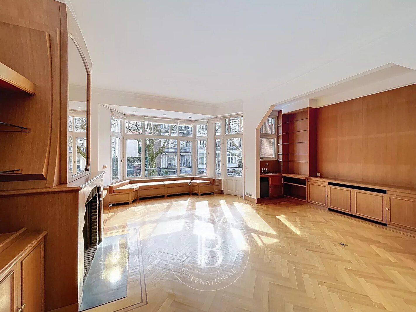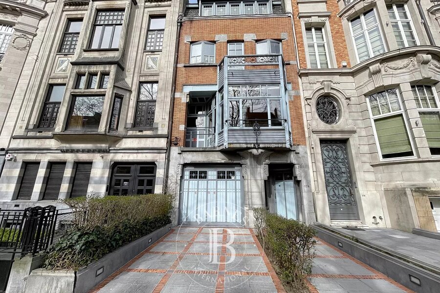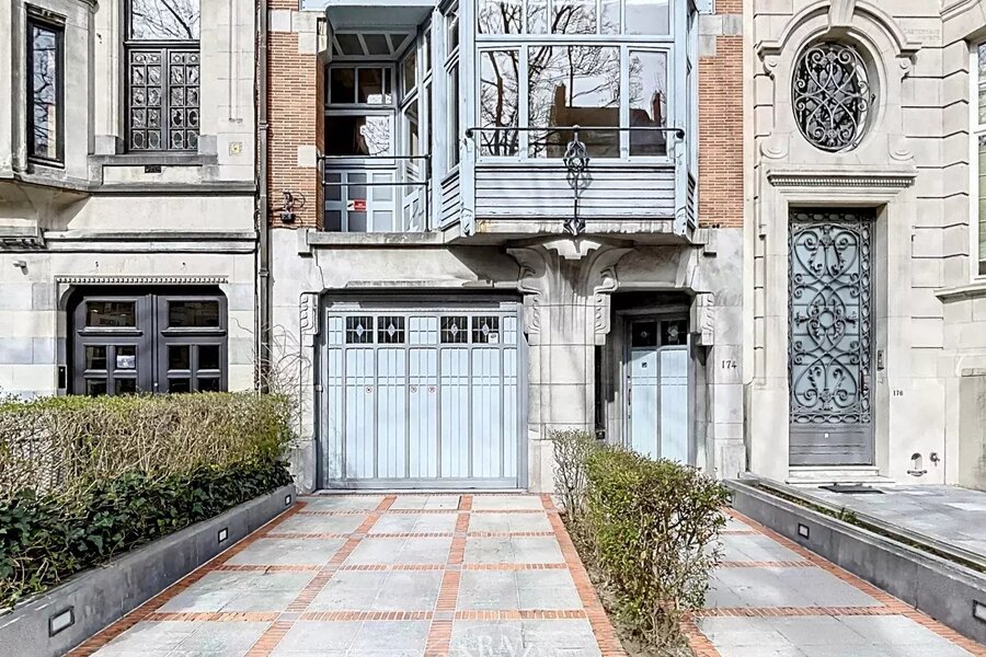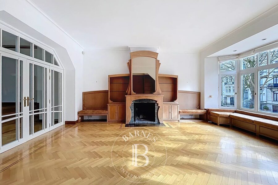Located on the prestigious Avenue Molière, this elegant mansion's remarkable 1912 facade, designed by Antoine Pompe, is immediately appealing. Faithful to the spirit of Art Nouveau, it features a subtle interplay of red brick and blue stone, a suspended bow window, large bay windows and original joinery painted light blue.