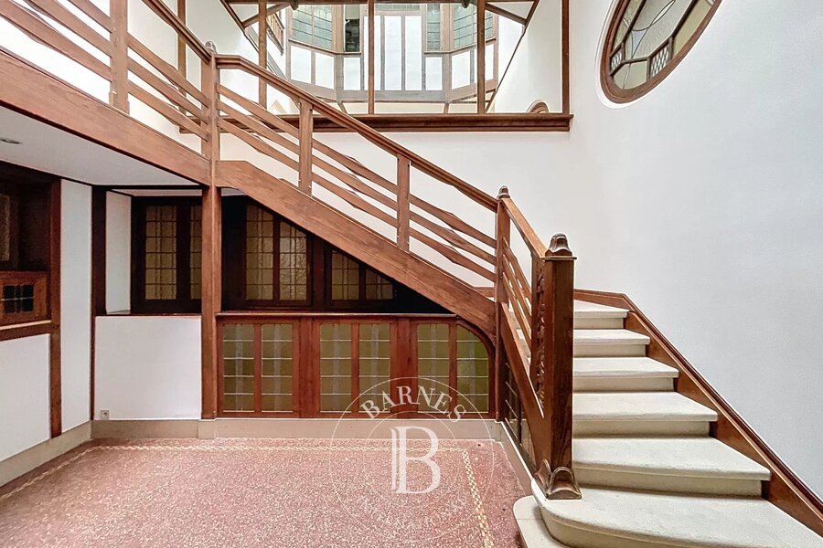 Barnes presents an exceptional residence, emblematic of the pre-modernist style, designed in 1913 at the request of lawyer Charles Gheude, based on plans by renowned architects Antoine Pompe and Fernand Bodson.