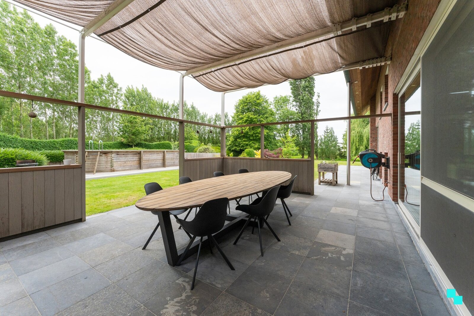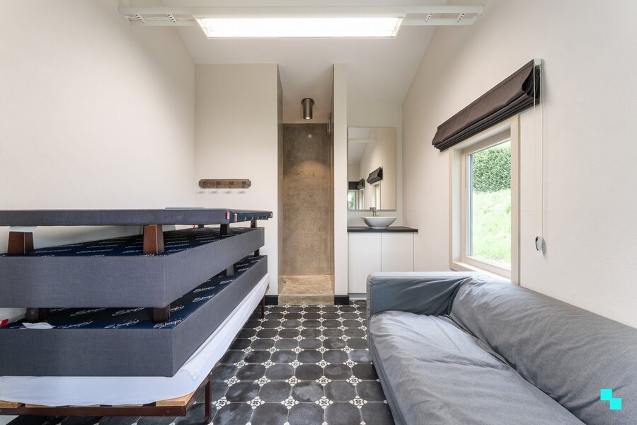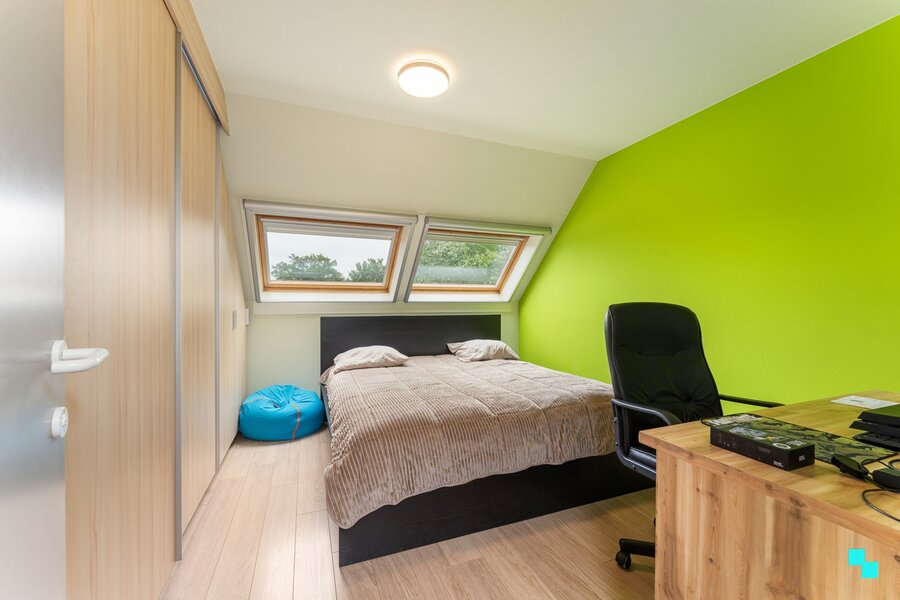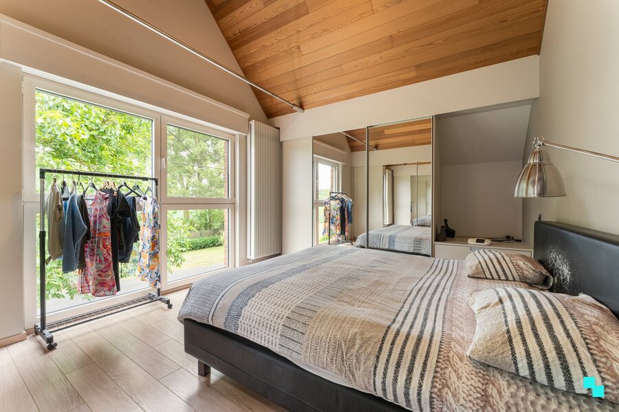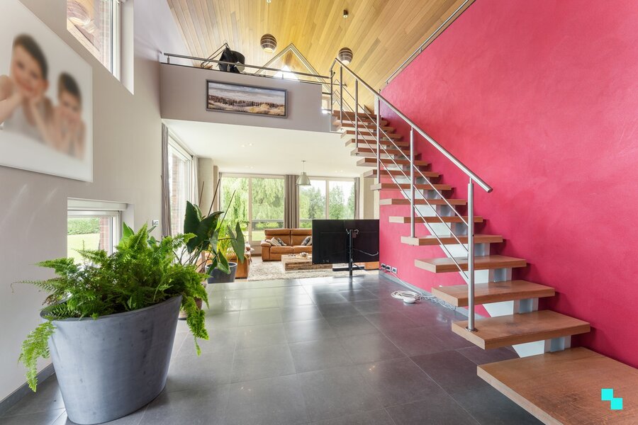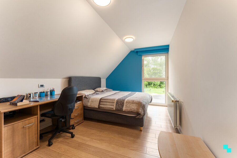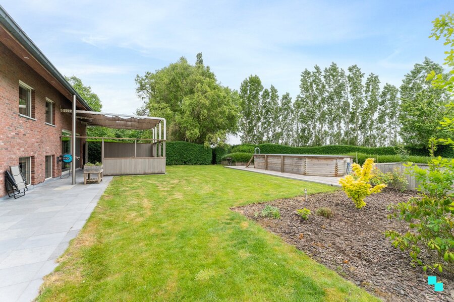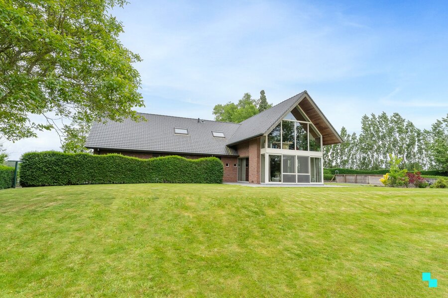 Gelegen in een landelijk gebied en omringd door uitgestrekte velden vinden we deze unieke ééngezinswoning terug. De verborgen parel is gelegen op een perceel van 12.816 m² en beschikt over een bewoonbare oppervlakte van 326m² (volgens EPC-attest). Ongeveer de helft van het perceel werd omgezet in bebossing, waardoor het tuinonderhoud een pak interessanter wordt. De woning is volledig onderkelderd en beschikt over een dubbele garage, voorraadkamer en polyvalente (opslag)ruimte. Inkomhal met vestiaire en gastentoilet, woonkamer met fantastisch zicht op de tuin, hyper geïnstalleerde keuken met aansluitend (overdekt) terras en annex berging/wasplaats. Open ruimte boven leefgedeelte, aansluitend de master bedroom met naastliggende slaapkamer die kan omgevormd worden tot badkamer (afvoer en toevoer voorzien). In de andere vleugel van de woning bevinden zich de drie overige slaapkamers en de geïnstalleerde badkamer. Volledig omheinde tuin, riante oprit met geautomatiseerde poort, inrijhelling voor garages in kelder, aparte garagebox, opbouwzwembad met sturing en de gezellige chalet. Het bijgebouw bestaat uit een apart toilet, leefruimte met keuken en aansluitend de slaapkamer met douche en wastafel. CV op aardgas (HR ketel 2021) | HR beglazing aluminium | EPC label B | Warmtepomp (airco) in leefruimte en alle slaapkamers | Zonnepanelen 12.390 Wp. Laurence (BIV 541 501) organiseert voor deze woning de Bordes Bezoekdag op zaterdag 7 maart 2026, mits het maken van een afspraak.