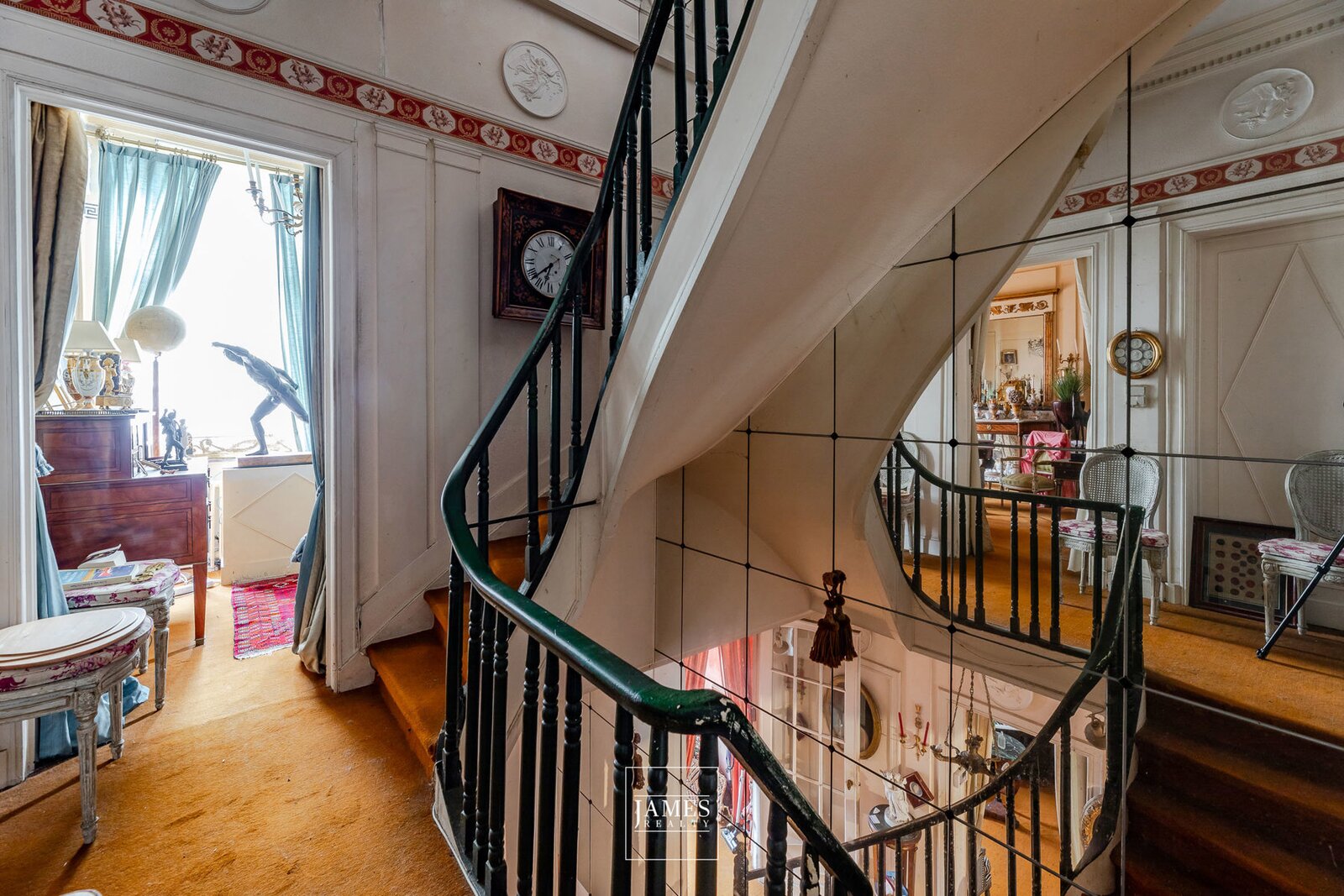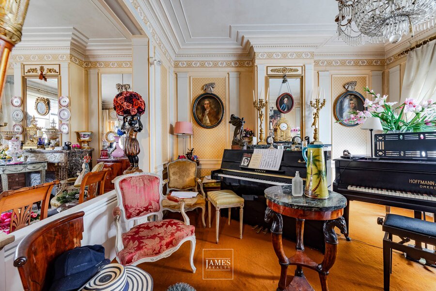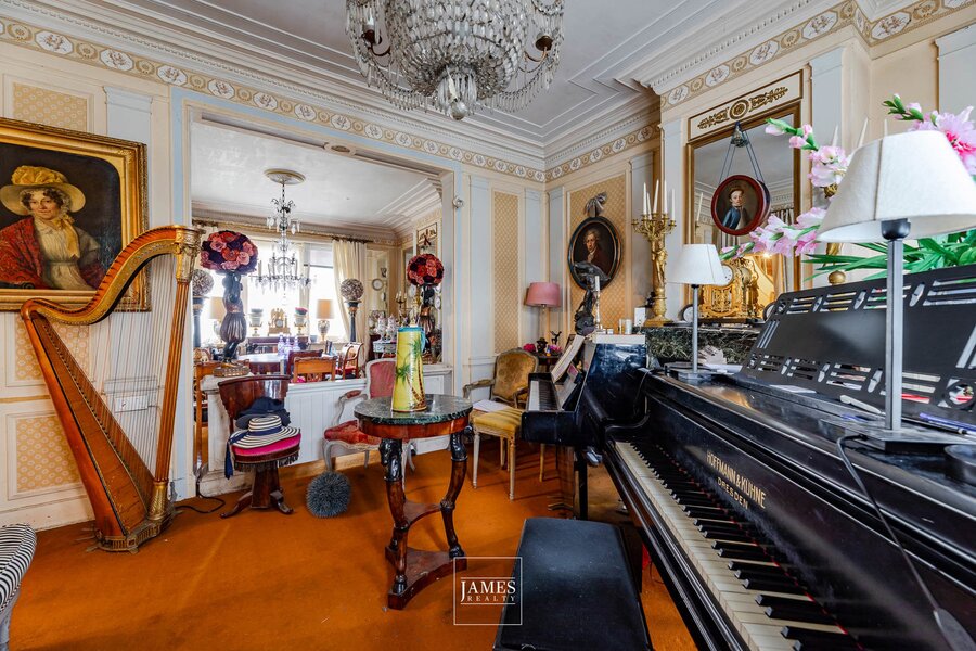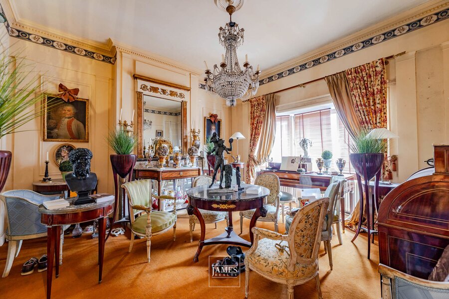 Flooded with natural light thanks to its southwest orientation, the reception rooms display all the charm of the era: mouldings, original wooden floors, generous ceiling heights and decorative fireplaces. They open directly onto a lovely garden, creating an exceptional living environment in this elegant residential neighbourhood.