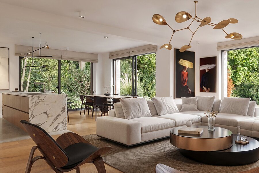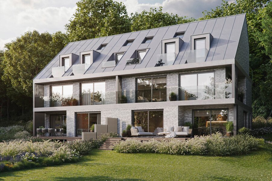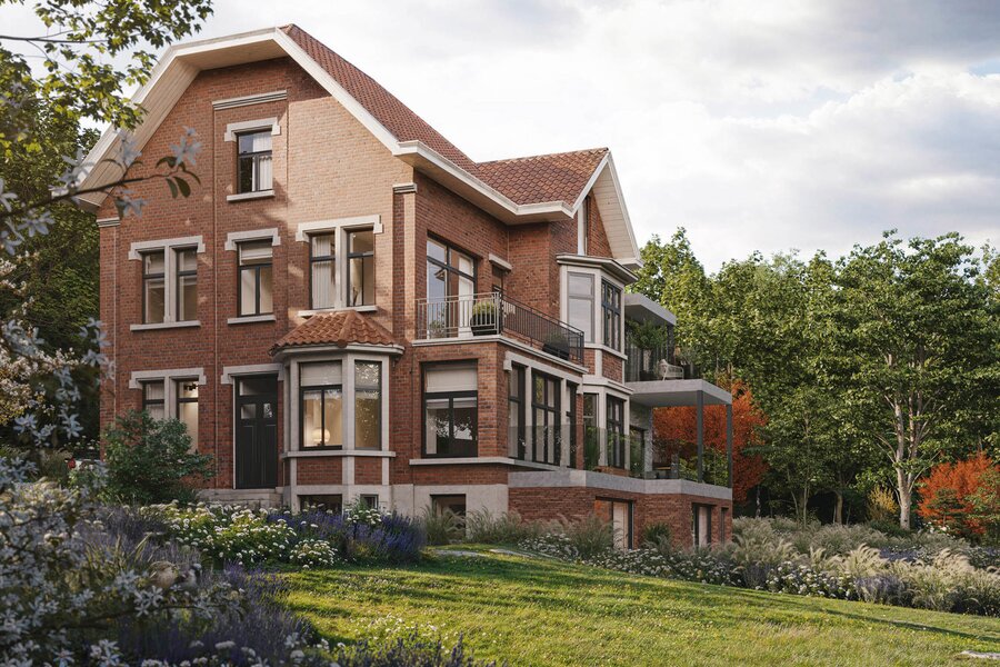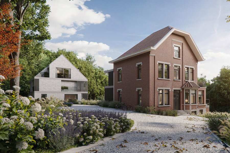 The "Blés d'Or" project, located on a back plot in the heart of Uccle, near Wolvendael Park and Kauwberg, in the Dieweg residential district, consists of a new development comprising two elegant duplexes housed in a 1929 villa, formerly used as a school, as well as the construction of two semi-detached houses.