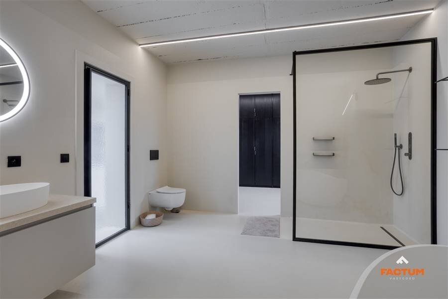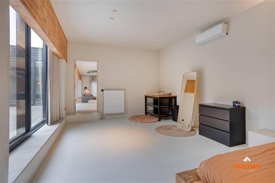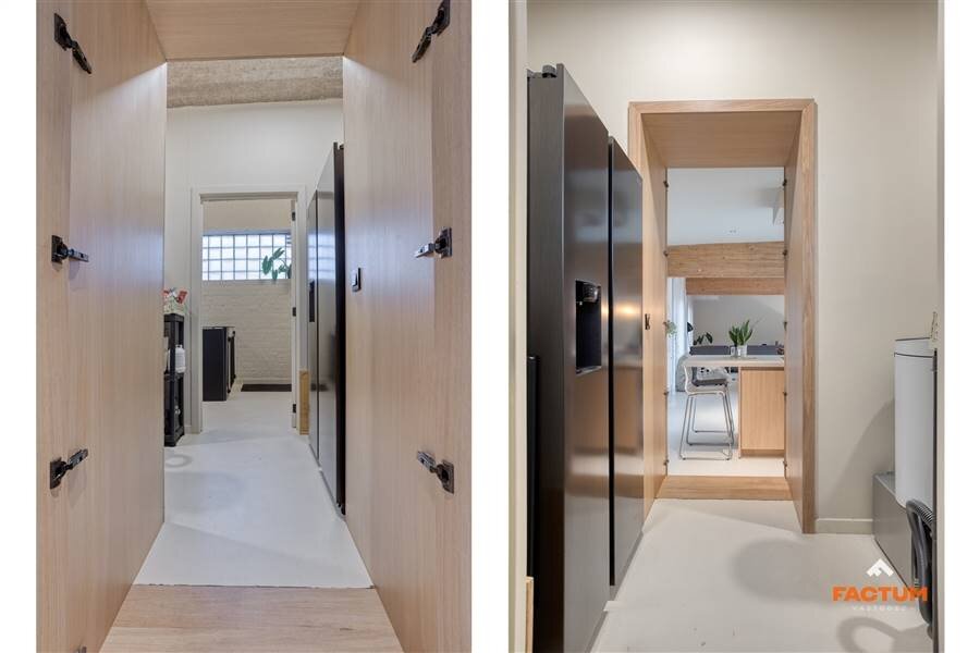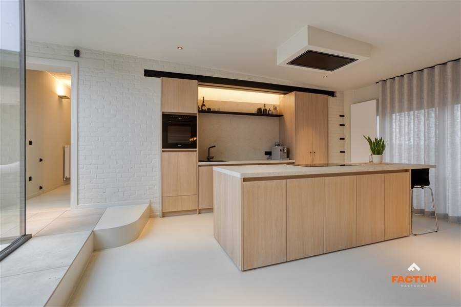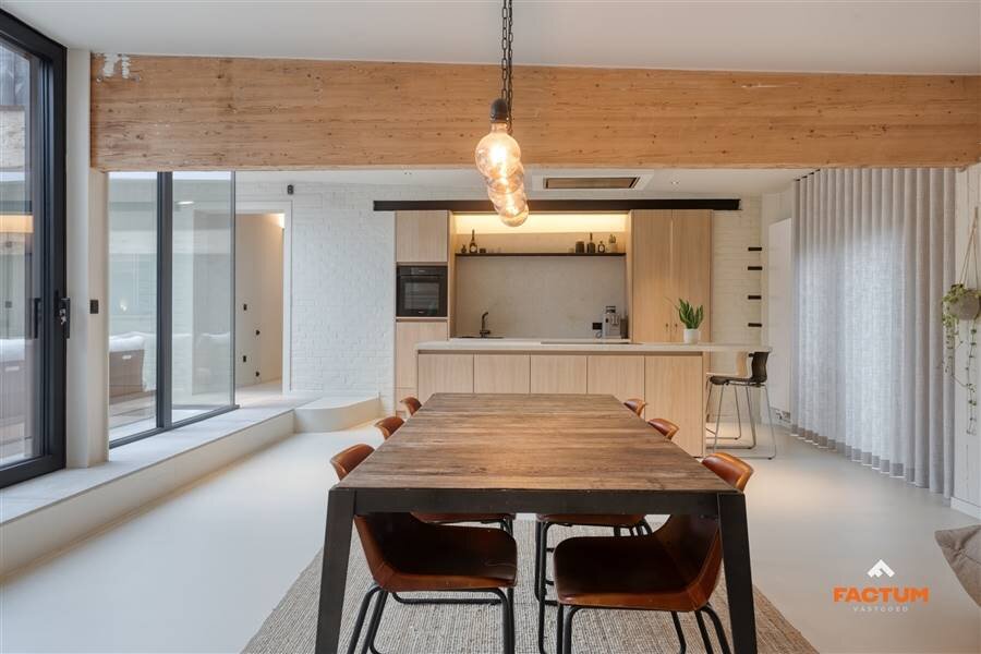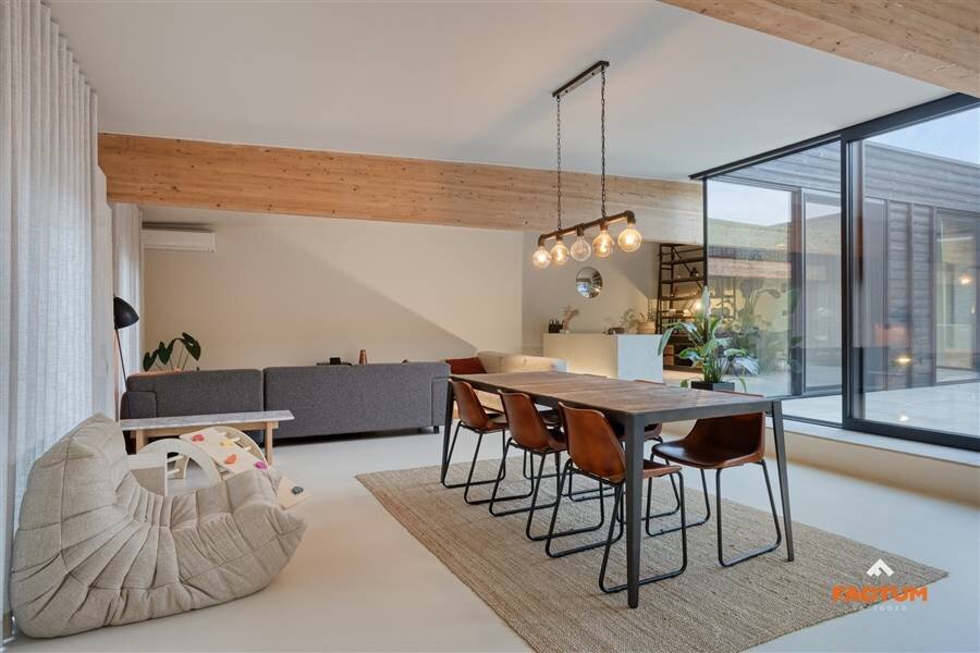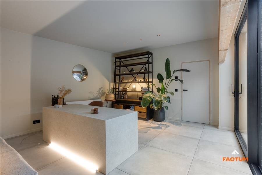 De loft werd tot in de puntjes afgewerkt met hoogwaardige materialen en een doordachte indeling. De royale leefruimte baadt in het licht dankzij grote raampartijen, het centrale terras en creëert een open, luchtige sfeer die perfect aansluit bij zowel modern wonen als stijlvol entertainen.