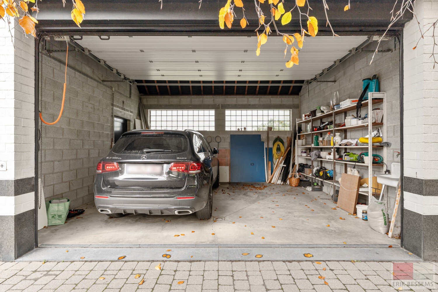 - 2 x dubbele garage met sectionale poort (Hormann) met afgietbak, garage aan de rechterkant heeft nog een bergzolder te bereiken via de vlizotrap;