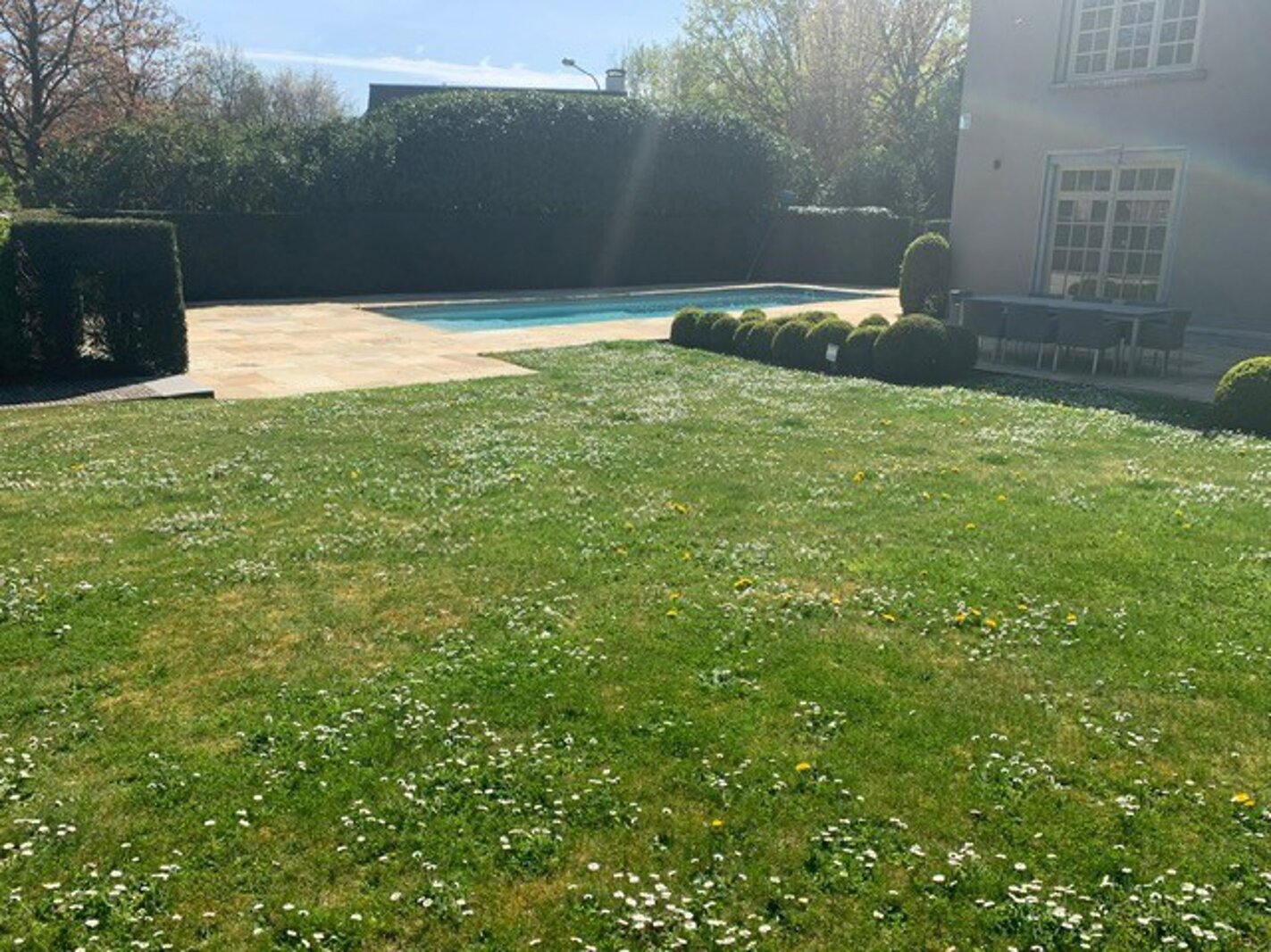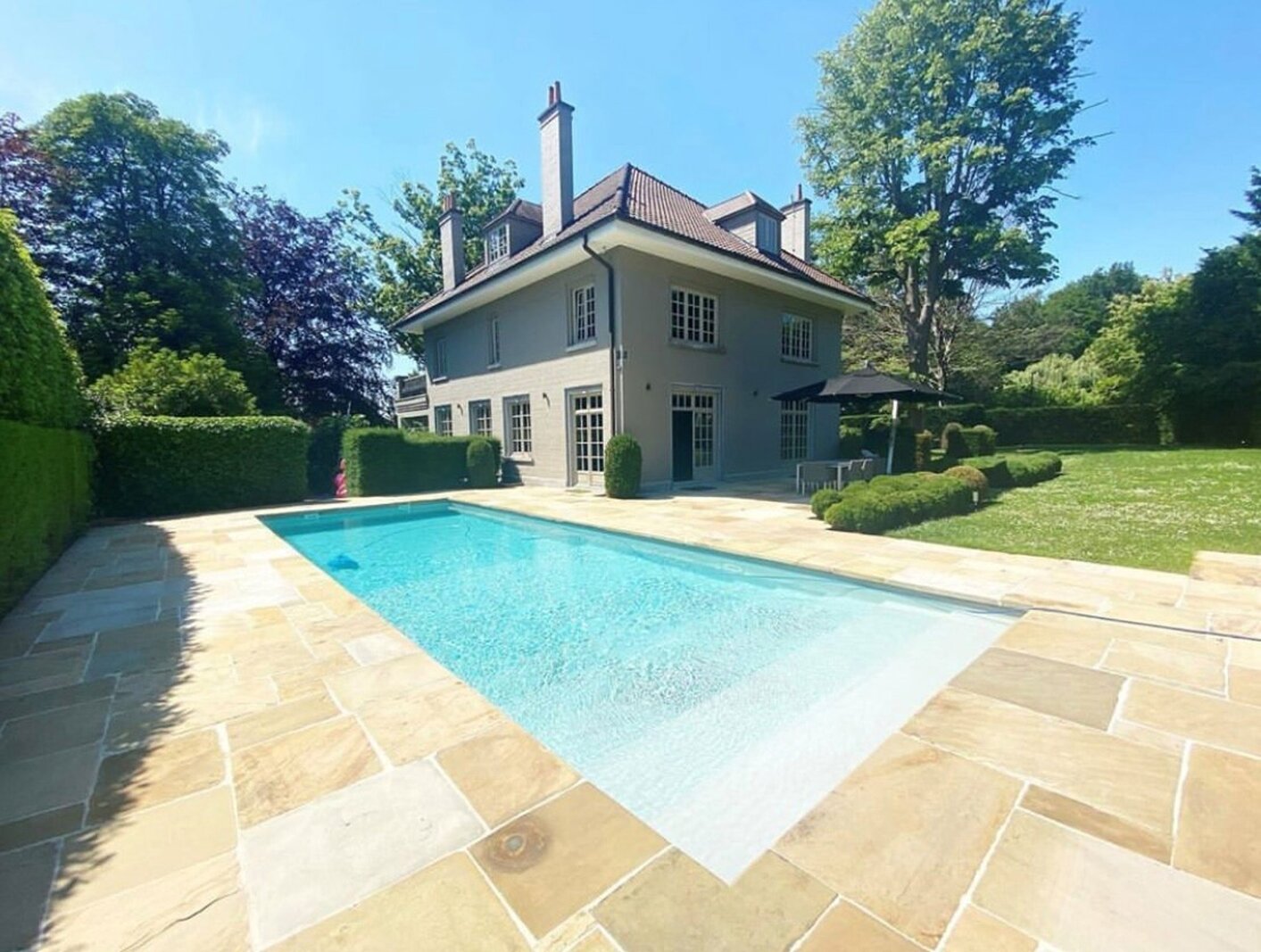 In the Espinette Centrale neighbourhood of Sainte-Anne, in an exceptional location on the edge of a green area, elegant villa combining classic and contemporary styles, set on beautiful grounds of +/- 21 acres, complete with a swimming pool. Living area of approximately 550 m², beautiful reception rooms, refined décor, fully equipped kitchen, 4/5 bedrooms, 3 bathrooms, fitness room, 3-car garage. Very high standard of finish. Peb C.