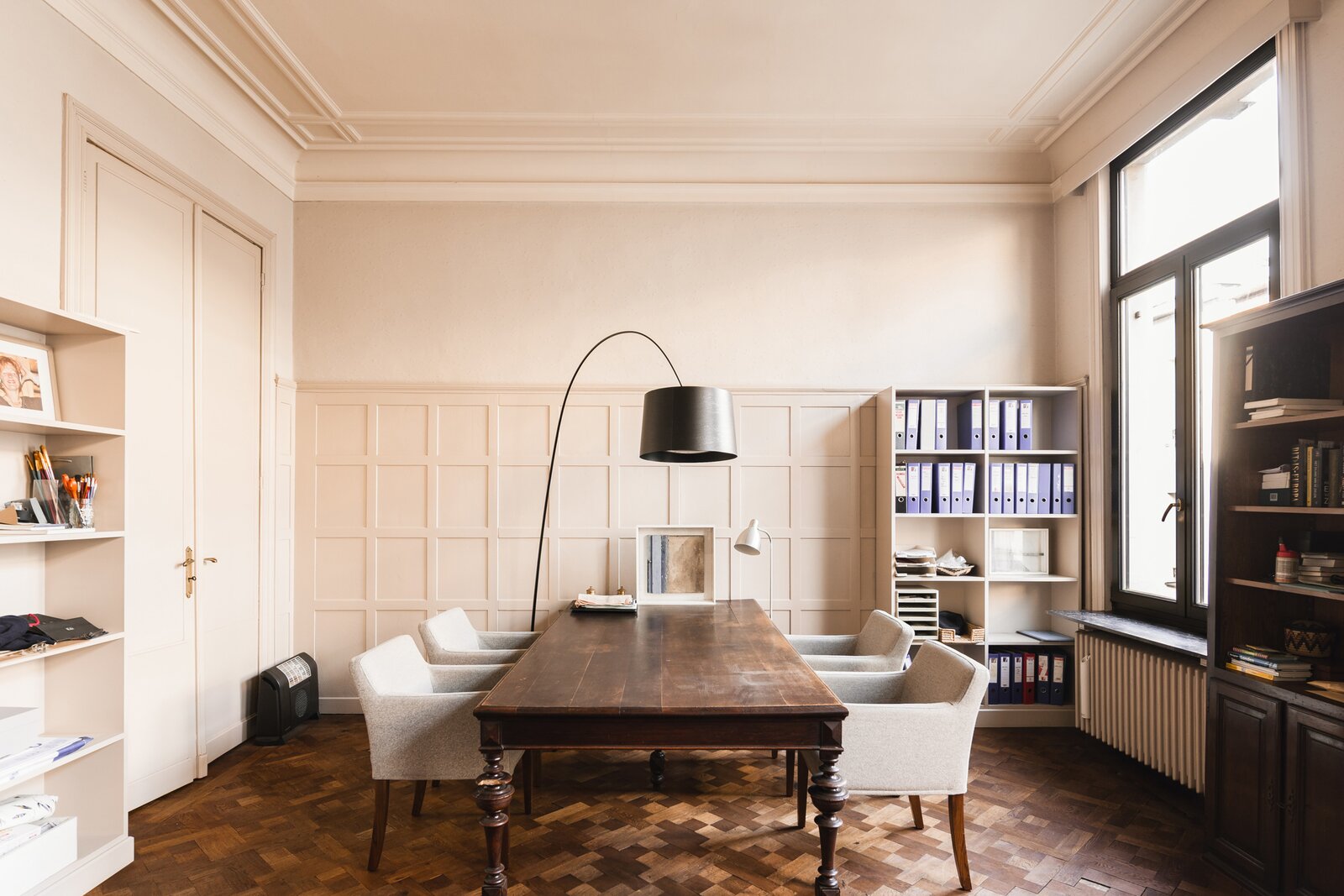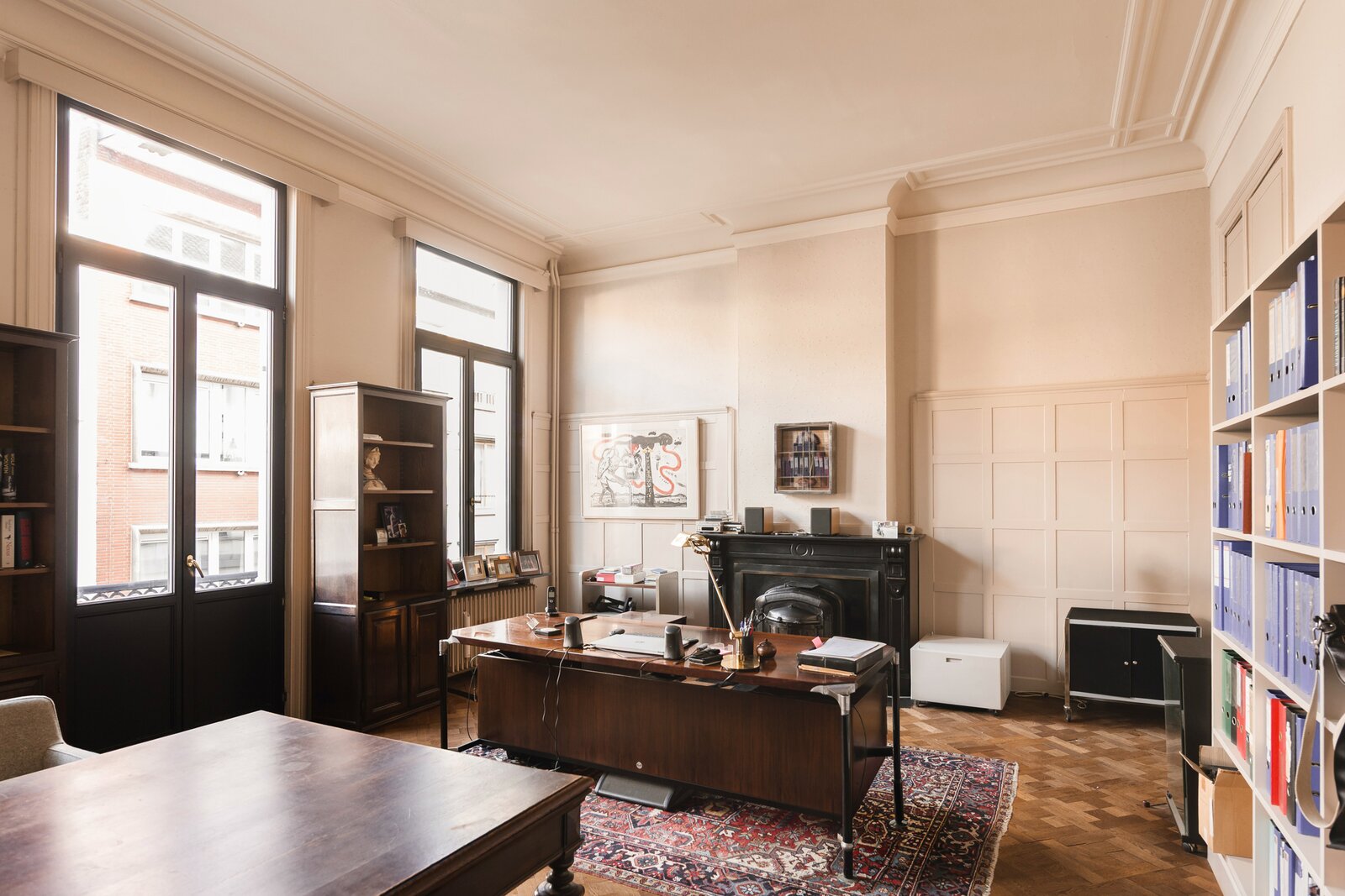 The first floor has been used as office space until now, with two large rooms and the original double French doors. On the second floor, you will find two more spacious rooms and an office or bathroom. Finally, you could also create a number of bedrooms in the attic or open up spaces for extra living space, a playroom or TV room... You name it.