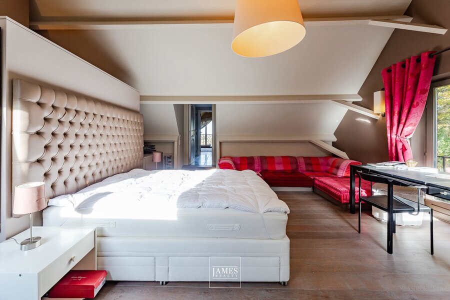 – Bedroom 5: 35 m² under the roof, custom-made furniture, bathroom, separate toilet, blue stone floor