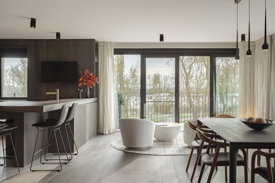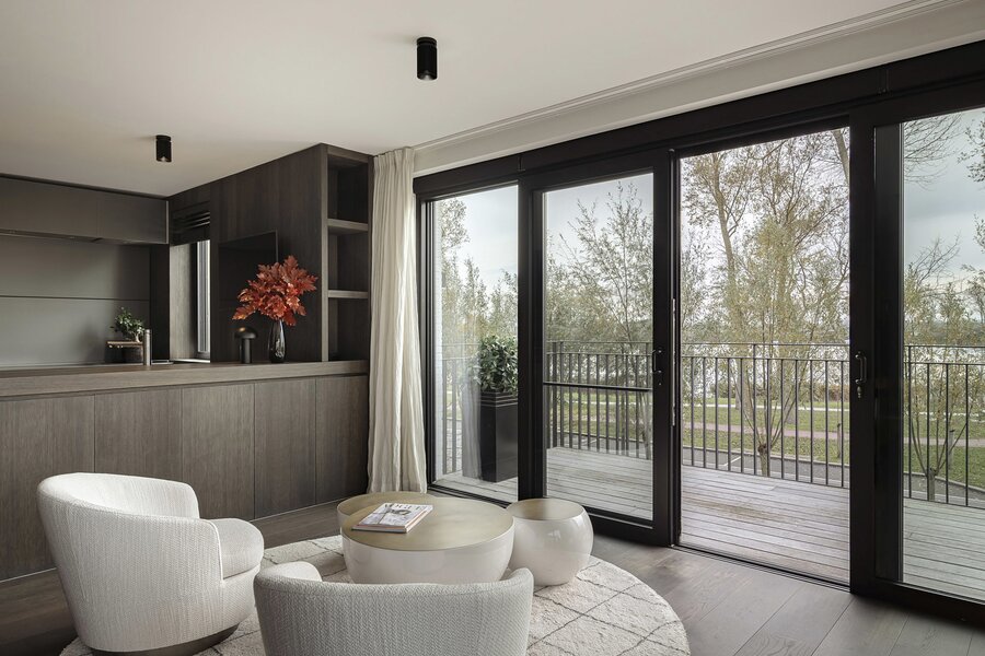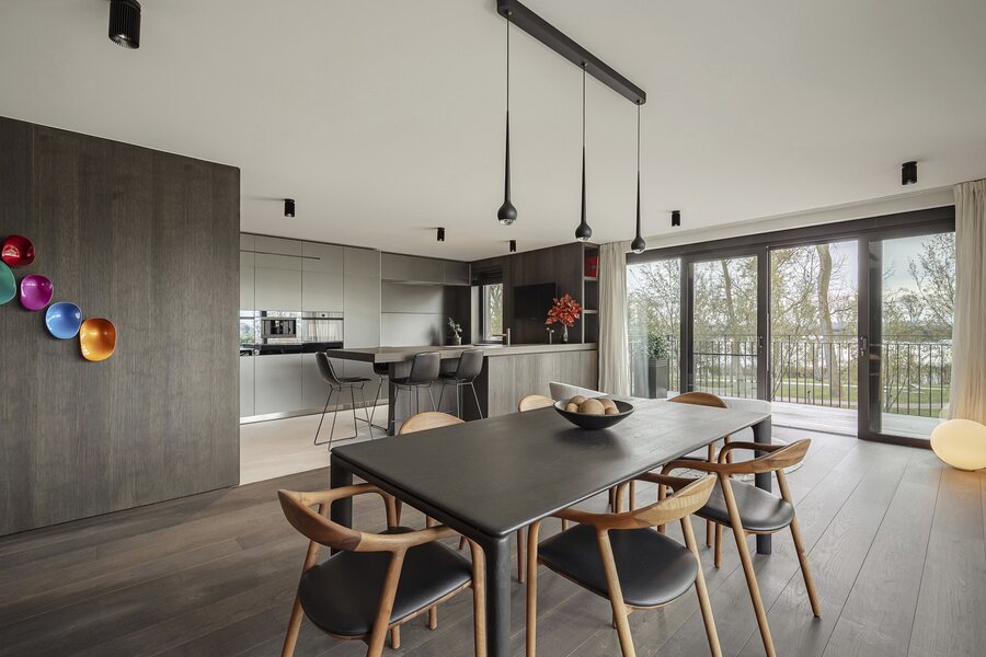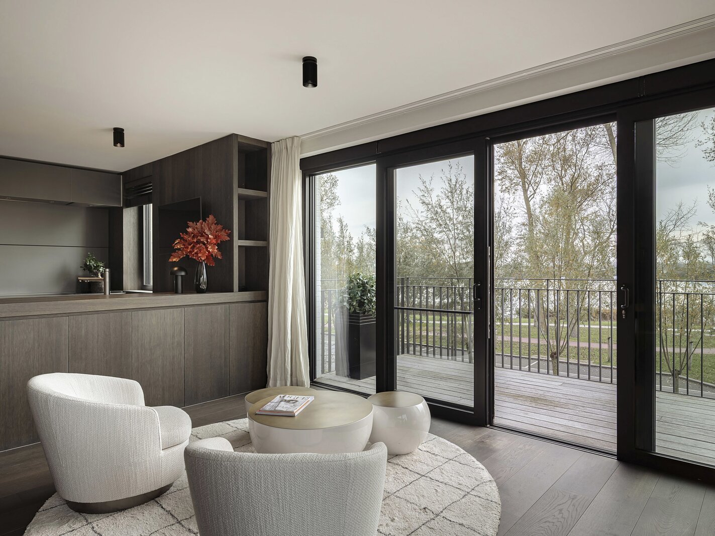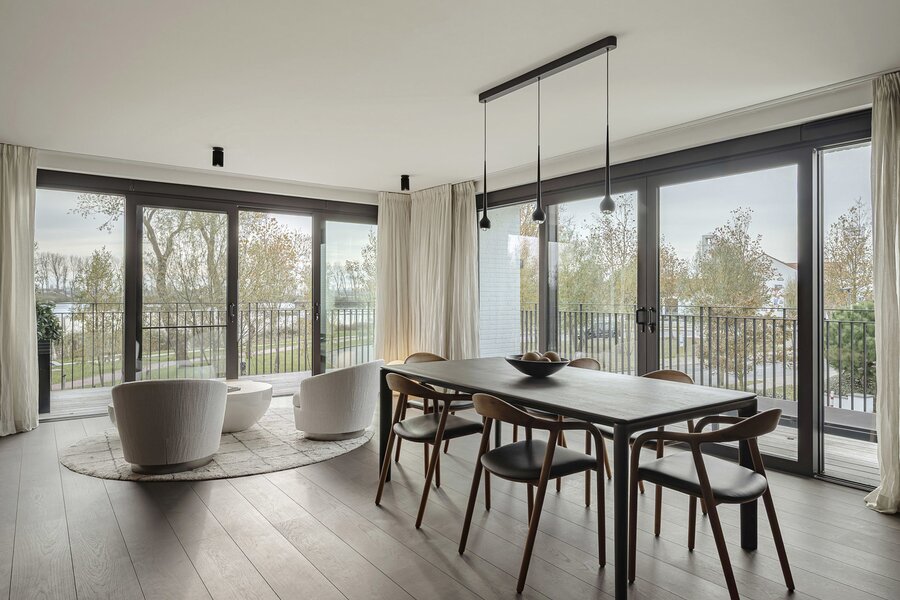 This exceptionally spacious and bright corner flat of 215 m², with 50 m² of south- and west-facing terraces, is located on the banks of the beautiful Duinenwatermeer lake.