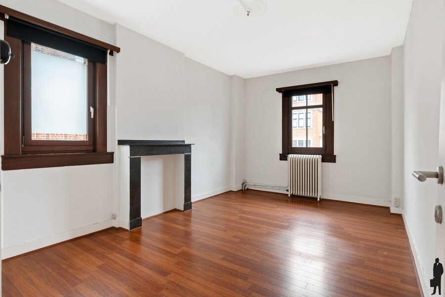 Deze charmante woning behield zijn authentieke elementen zoals parketvloeren, mozaïektegels, hoge plafonds en marmeren schouwen