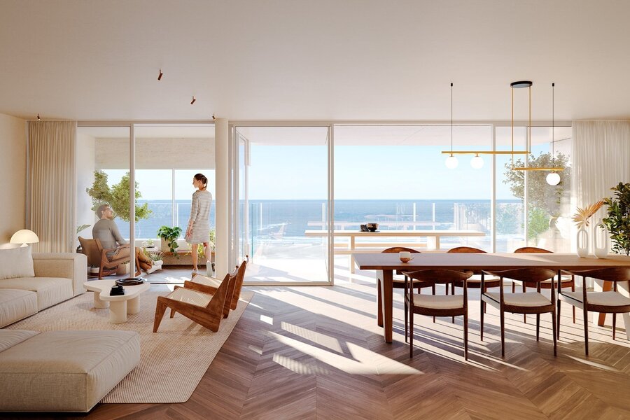 Met een bewoonbare oppervlakte van 127,17 m² beschikt het appartement over drie slaapkamers en een ruime leefruimte die maximaal is georiënteerd op het uitzicht. De brede gevel zorgt voor een open en panoramisch zicht op zee, waarbij licht en horizon een vast onderdeel worden van het dagelijkse wonen.
