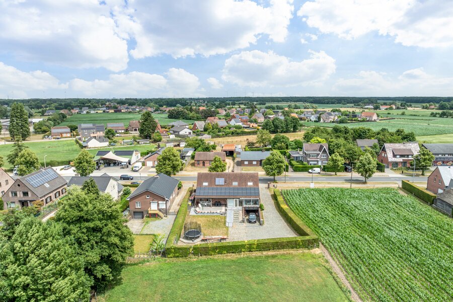 Interesse of verdere vragen? Contacteer Jeff Peeters via jeff.peeters@copandi.be of +32 492 577 317. Deze ruime, instapklare woning ligt landelijk en rustig, maar toch vlak bij de E313, winkels, scholen en openbaar vervoer. Ideaal voor wie comfortabel wil wonen met veel binnen- én buitenruimte. Het gelijkvloers omvat een inkomhal met vestiaire en gastentoilet, een lichtrijke leefruimte van 42 m² met sierschouw en houtkachel, een volledig uitgeruste keuken, drie slaapkamers en een badkamer met ligbad, inloopdouche, dubbele lavabo en toilet. De veranda van 25 m² biedt extra leefruimte met zicht op de tuin. Op de verdieping vind je vier slaapkamers, een tweede badkamer en een apart toilet. Twee kamers kunnen eenvoudig samengevoegd worden tot een polyvalente ruimte van 45 m², ideaal voor bureau, hobby of ontspanning. Een valtrap leidt naar de zolder (20 m²). De woning is volledig onderkelderd met garage, werkplaats en ruime berging. Buiten geniet je van een zuid-oostgericht terras, een volledig omheinde tuin en een prachtig landelijk uitzicht met maximale privacy.