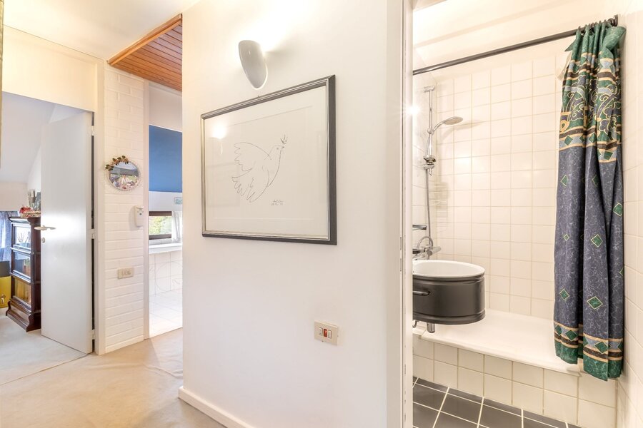 De weldoordachte constructie tegen een hellend terrein zorgt voor een zeer praktische indeling.