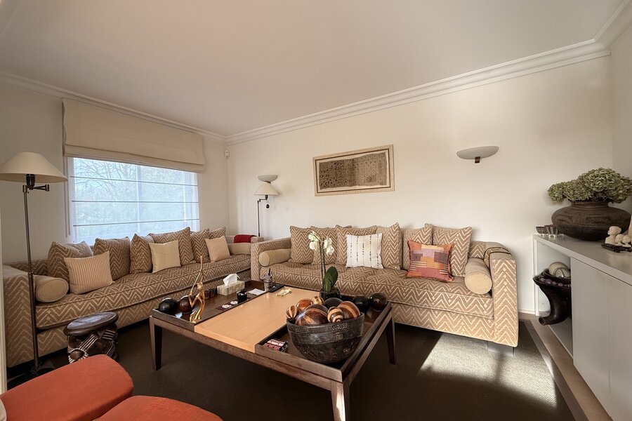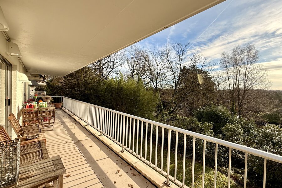 The apartment opens onto a very spacious entrance hall with cloakroom, leading to large reception rooms of about 75 sqm with parquet flooring and access to the terrace, as well as a charming, cosy lounge of nearly 25 sqm. Separate fully equipped kitchen with Gaggenau oven, 4 bedrooms including the main bedroom with its travertine bathroom and huge walk-in dressing room with central island, another bedroom currently used as an office, etc.