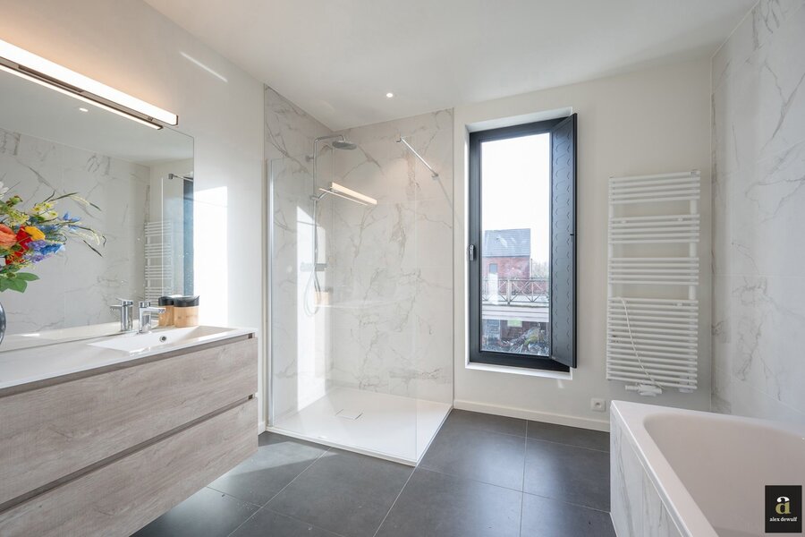 Internal garage. Multiple parking spaces in front of and next to the property. Beautiful large garden with sun-oriented terraces. Solar panels, low EPB, automatic gate, underfloor heating, rainwater tank, … Swimming pool possible. Contact us to schedule a viewing.