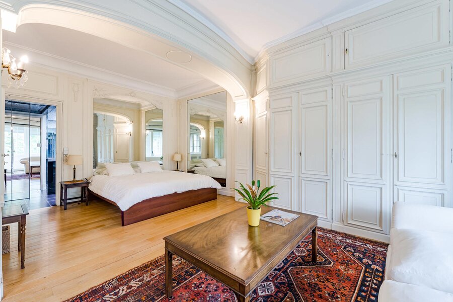 Located on avenue Franklin Roosevelt, just a stone's throw from the Bois de la Cambre and the Abbey, this beautiful, atypical mansion is full of charm. Composed of two connected buildings, it offers in the main building very beautiful receptions, an ultra-equipped kitchen and, on the upper floors, 4 bedrooms each with their own shower room as well as custom-made cupboards or a dressing room. The ground floor offers the possibility of exercising a liberal profession or could be a very pleasant guest flat. The second building, located on avenue du Congo, offers a garage for several cars as well as a 2 bedroom duplex flat with each its own shower room. Several parking spaces complete this unusual and rare property, as well as a delightful Italian-style courtyard sheltered from all eyes.