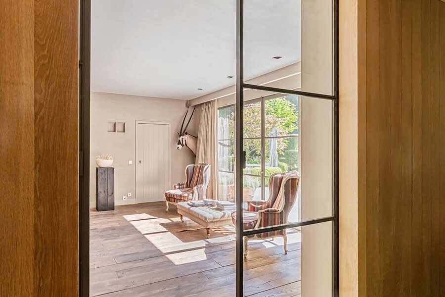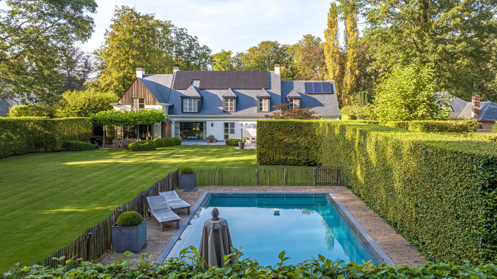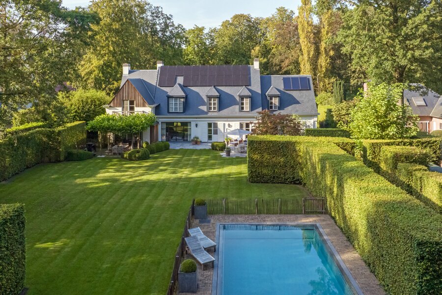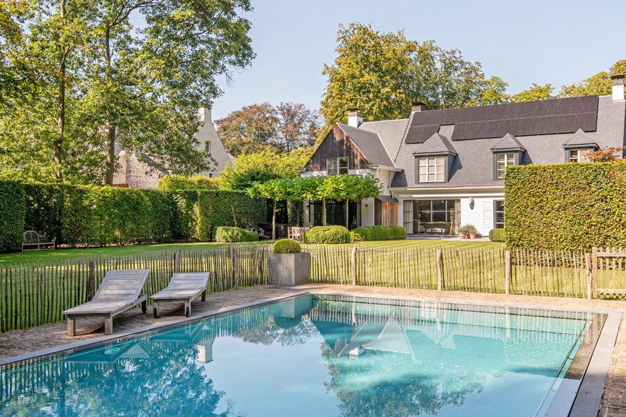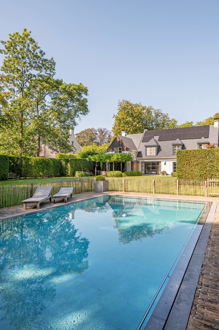 In de uiterst rustige Parklaan rechtover een kasteeldomein, ligt deze knappe villa waar je je het hele jaar door op vakantie waant: de tuin is zo heerlijk, met verschillende gezellige plekjes en terrassen, zwembad & uitgebreide poolhouse, en de woning vanbinnen is zo knus, cosy & warm, een zalig gezellige cocon, dat je hier zo graag thuiskomt om uit te rusten en te genieten, doorheen alle seizoenen.