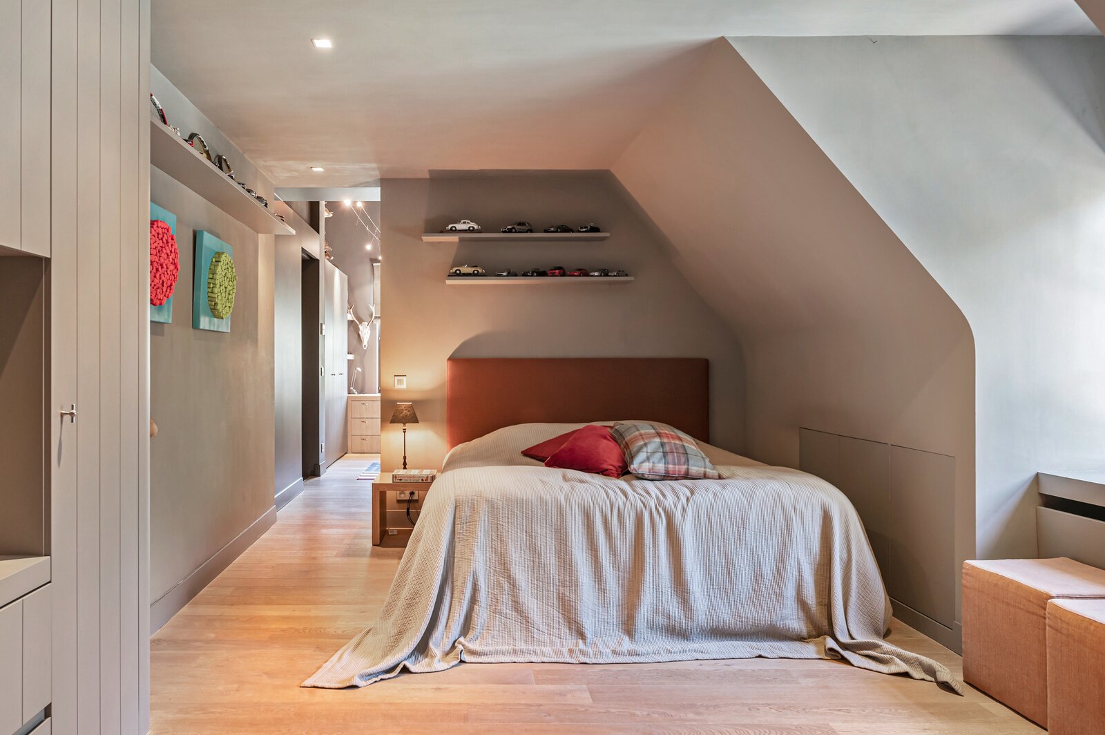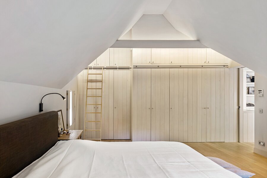 Het enorme volume ingebouwde kasten doorheen de hele woning, zowel boven als beneden, is ongezien en ongelooflijk praktisch.