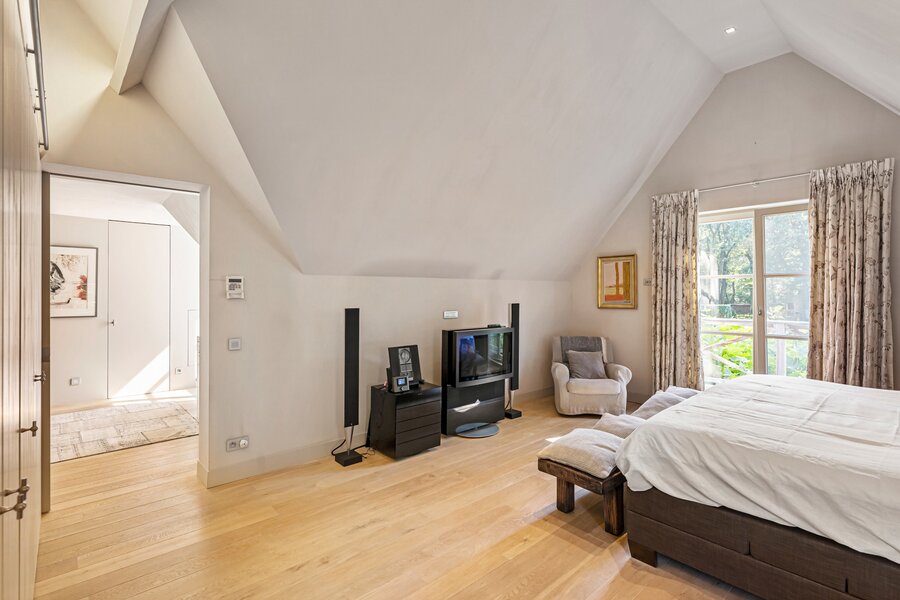 Boven zijn er 4 ruime kamers met elk een 'en suite' badkamer en een aangename bureauruimte of dressing. De master bedroom is bijna een privé-appartement, maar ook de andere kamers genieten van volledige privacy. Apart toilet.