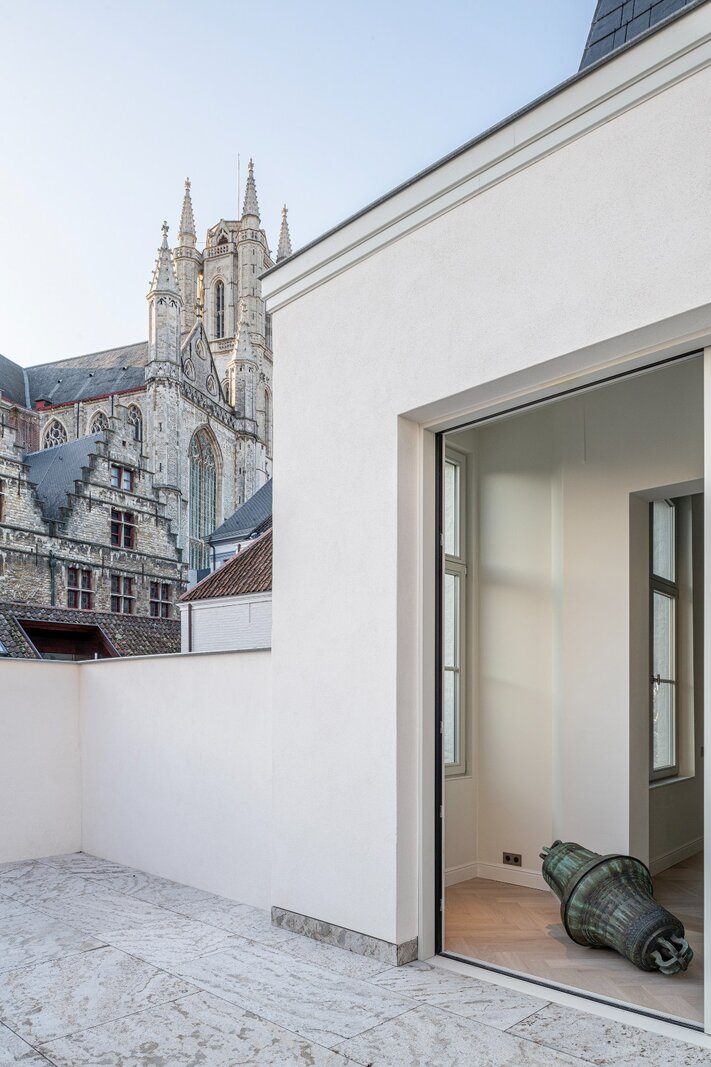 Aansluitend bevindt zich een prachtig terras, waar u opnieuw geniet van een adembenemend en zeldzaam uitzicht op de Sint-Baafskathedraal — een absolute meerwaarde en unieke troef in het historische stadscentrum.