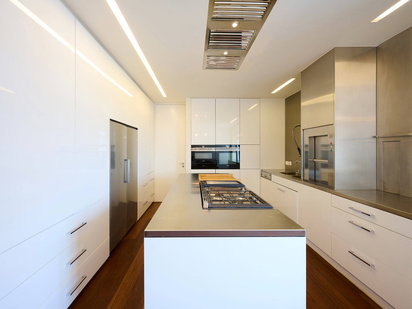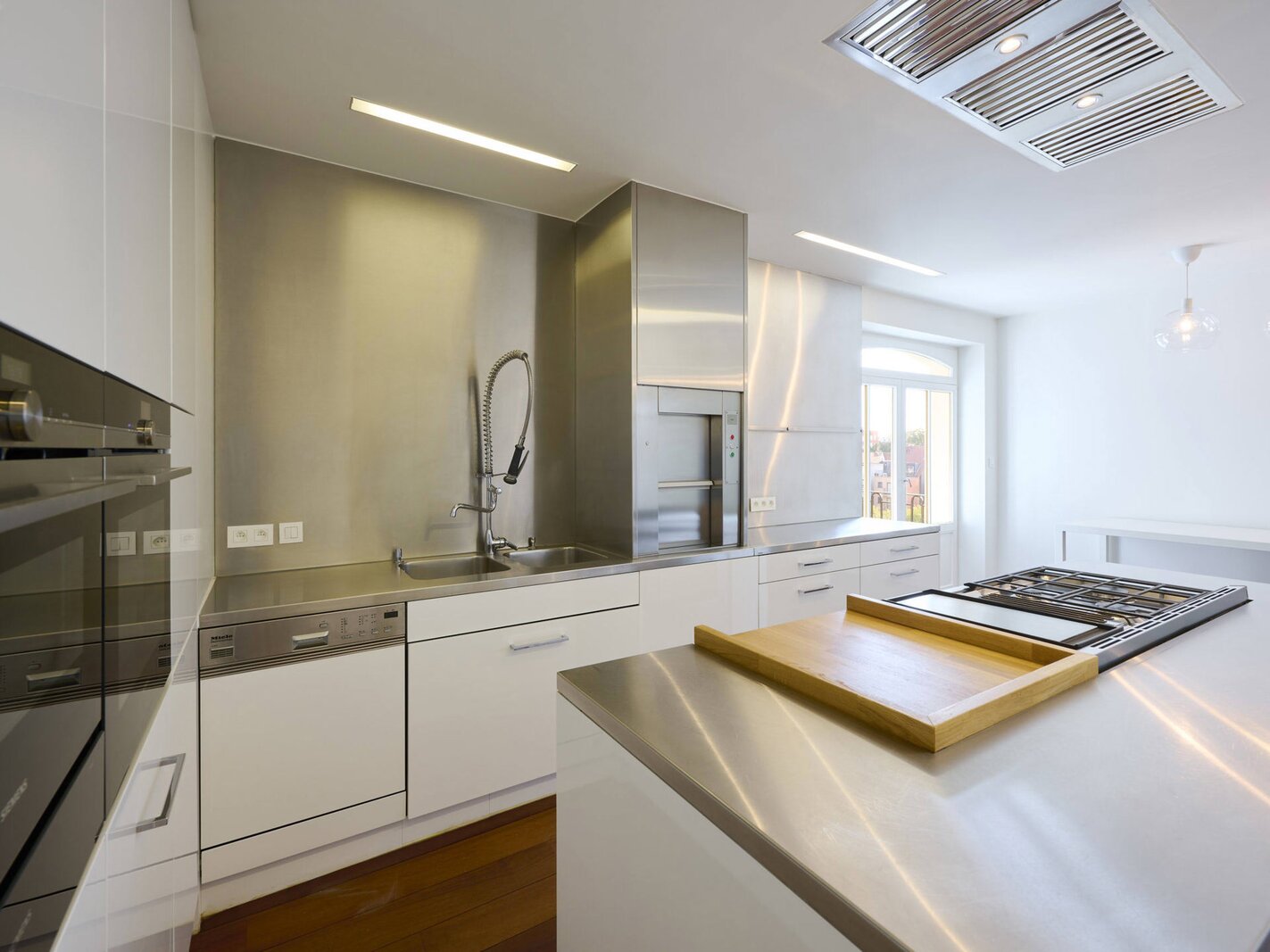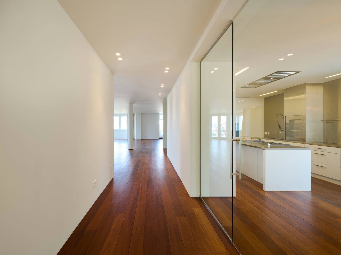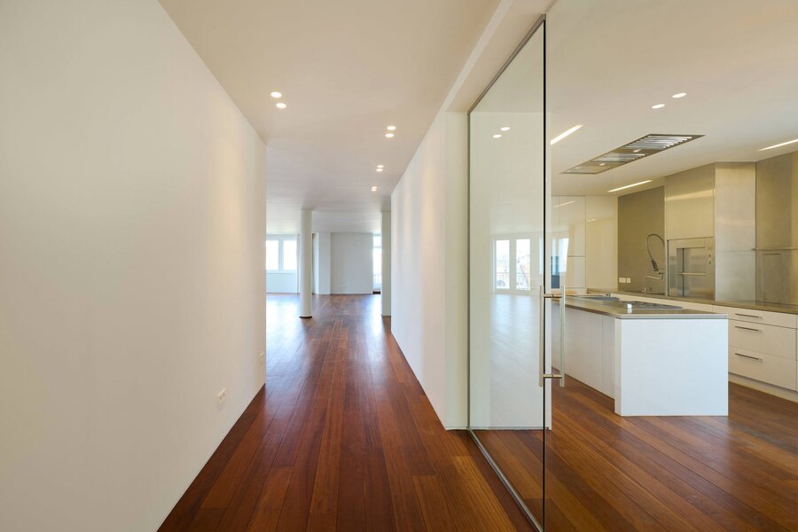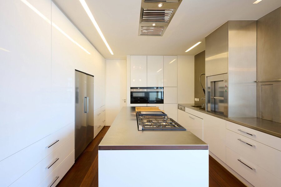 The apartment comprises a hall with a cloakroom, a large open-plan living/dining room with a balcony, and a separate semi-professional kitchen with a breakfast nook and a small terrace. The master bedroom offers a separate dressing room and a full bathroom (whirlpool bath, aromatherapy shower). The three other suites each have their own dressing room and private bathroom/shower. Upstairs, a space that can be used as a second reception room opens directly onto the perfectly oriented terraces and enjoys spectacular views of Brussels. A cinema room completes this floor.