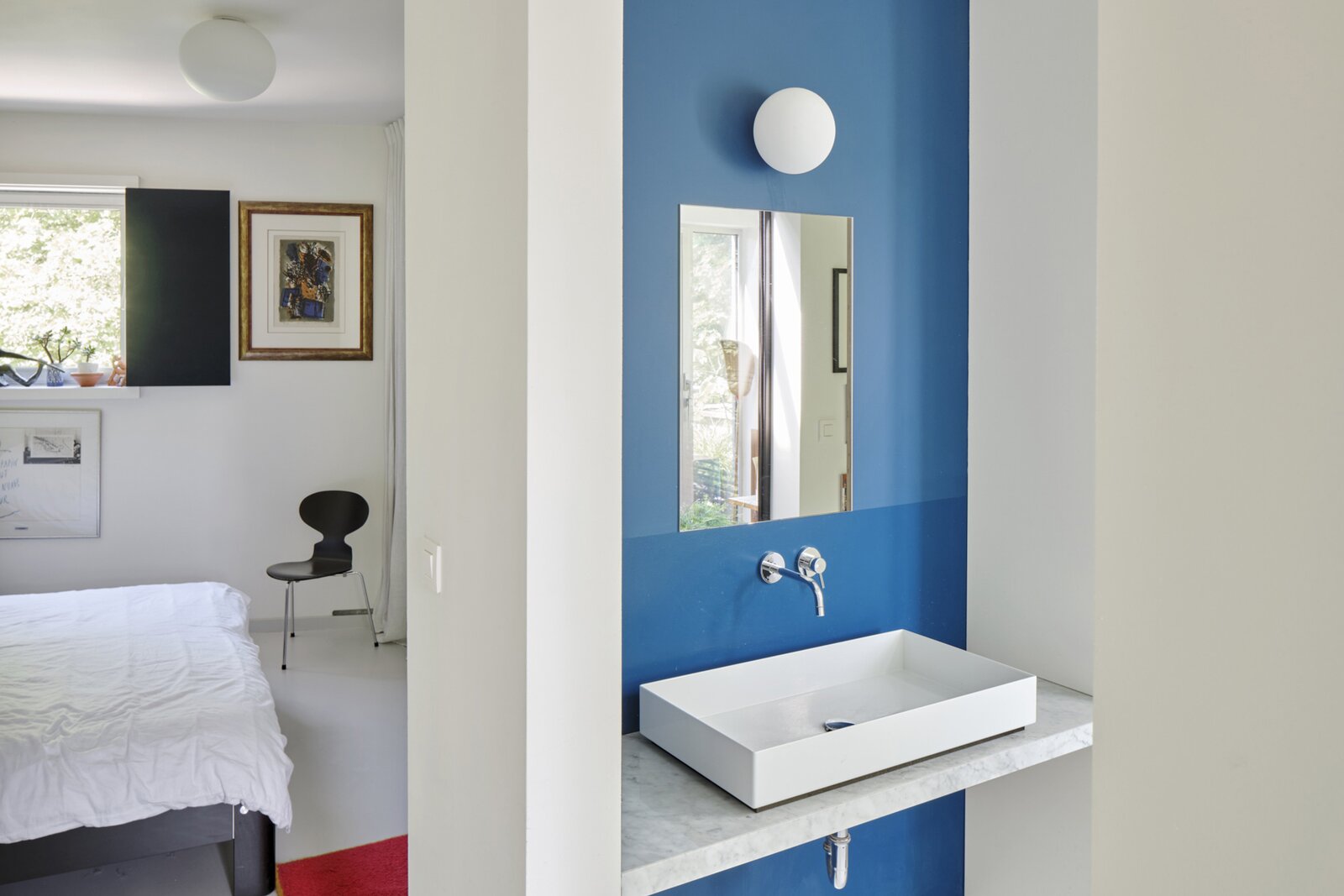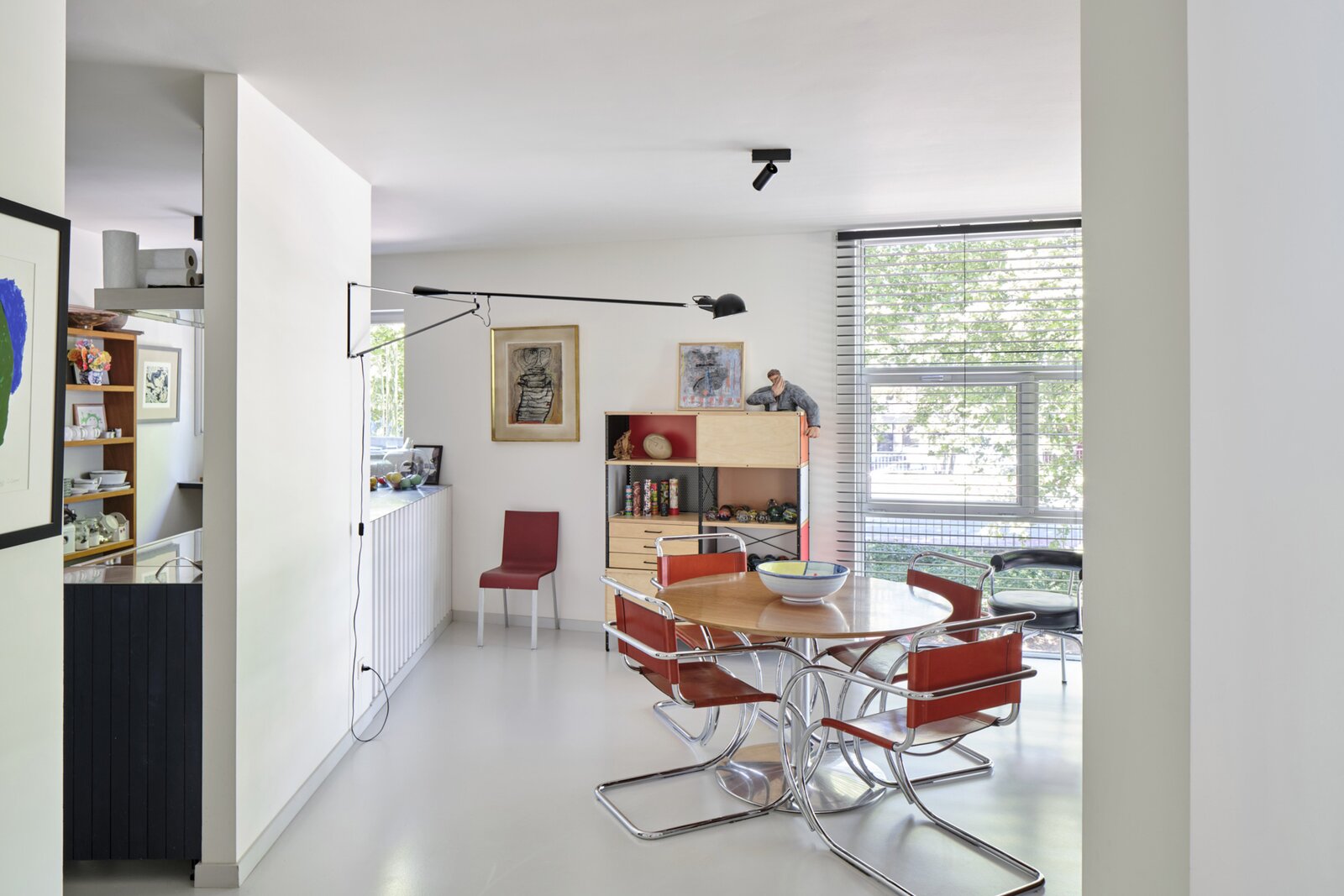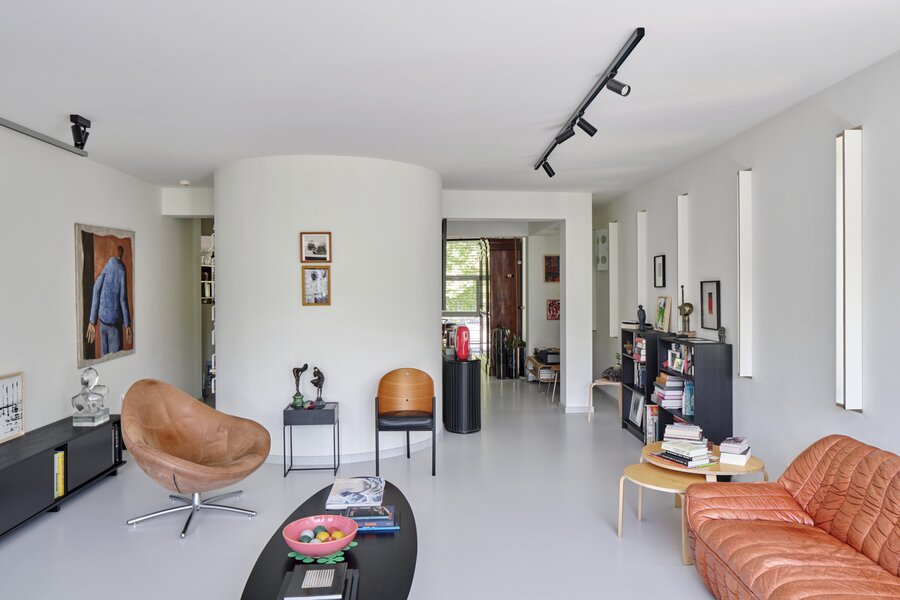 This architectural building underwent a complete renovation in 2016–17 by Atelier Dialect. During this transformation, the house—originally a single-family home—was divided into two separate units. One is an office space with its own entrance, office, reception area with stunning views over the Dijle, kitchenette and sanitary facilities, currently rented out for €1,100 per month. The second unit is a beautifully finished design apartment spread over the two upper floors. This space can be adapted to your needs: reconvert it into a single-family home, start your own practice below your residence, or continue renting out the office—many possibilities are available.