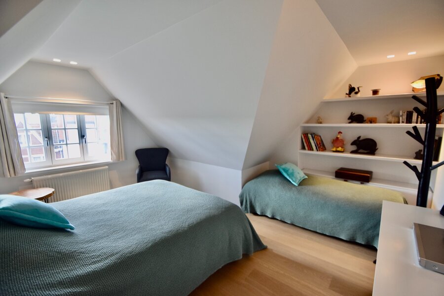 Prachtige karaktervolle villa in hartje Zoute, op enkele stappen van het Dominicanenkerkje en het strand te huur. Indeling: Inkomhal met vestiaire en gastentoilet. Lichtrijke woon- en eetkamer met gashaard. Open keuken met eethoek, uitgevend op het zuid georiënteerd terras en tuin. Bijkeuken/Wasplaats. Eerste verdieping: Master bedroom met aansluitende badkamer (bad, douche, lavabo en toilet). 2de slaapkamer met douchekamer en toilet. 3de slaapkamers met douchekamer en toilet. Tweede verdieping : 4de en 5de slaapkamer. Badkamer. Apart toilet. Zolder. Ruime garage en parkeerplaats voor de woning. Prachtige eigendom genietend van een Triple AAA ligging. Beschikbaar vanaf 01/05/2026.