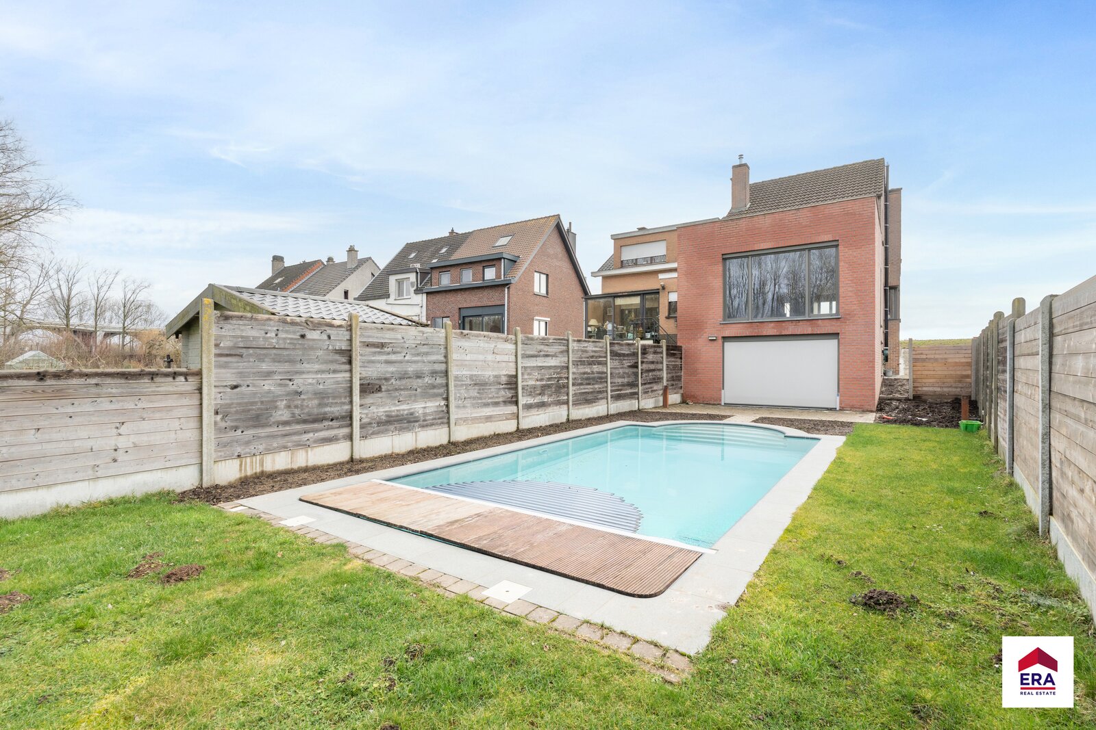 Three facades facades with pool in Dilbeek