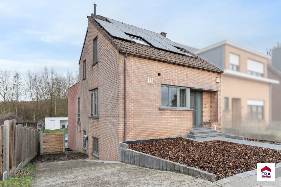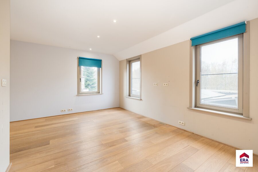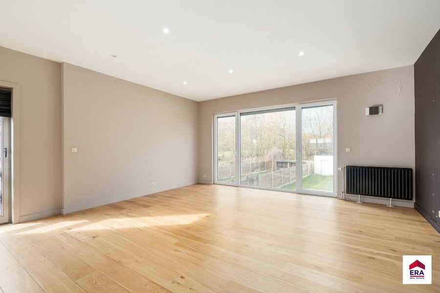 For sale: spacious three facades house on Roomstraat, Dilbeek, peacefully located in a green setting with views over trees and fields.