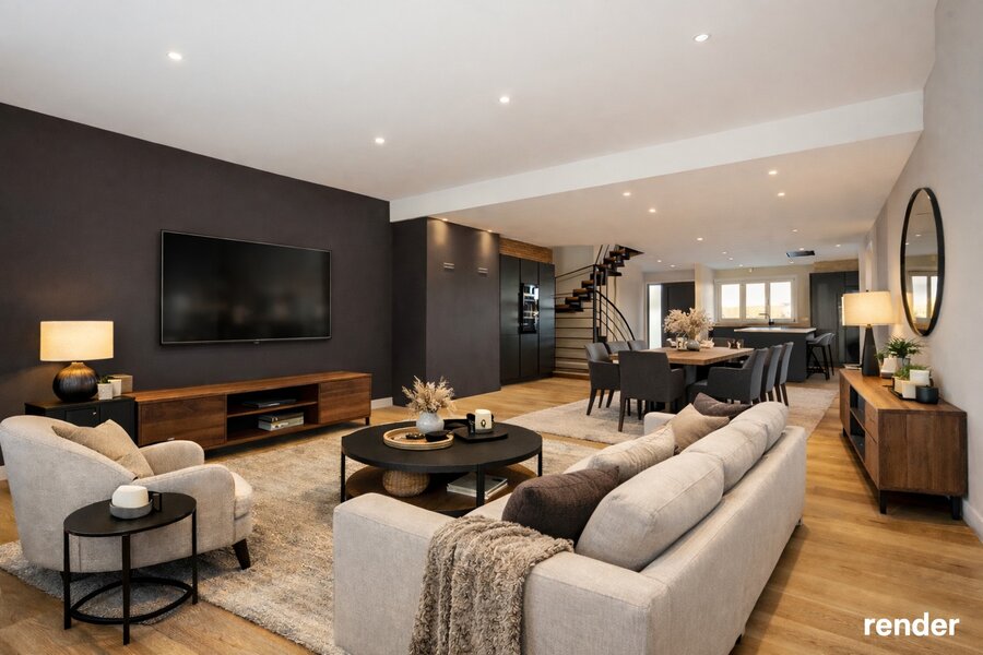 • Large open kitchen living room (65 m²) with fireplace