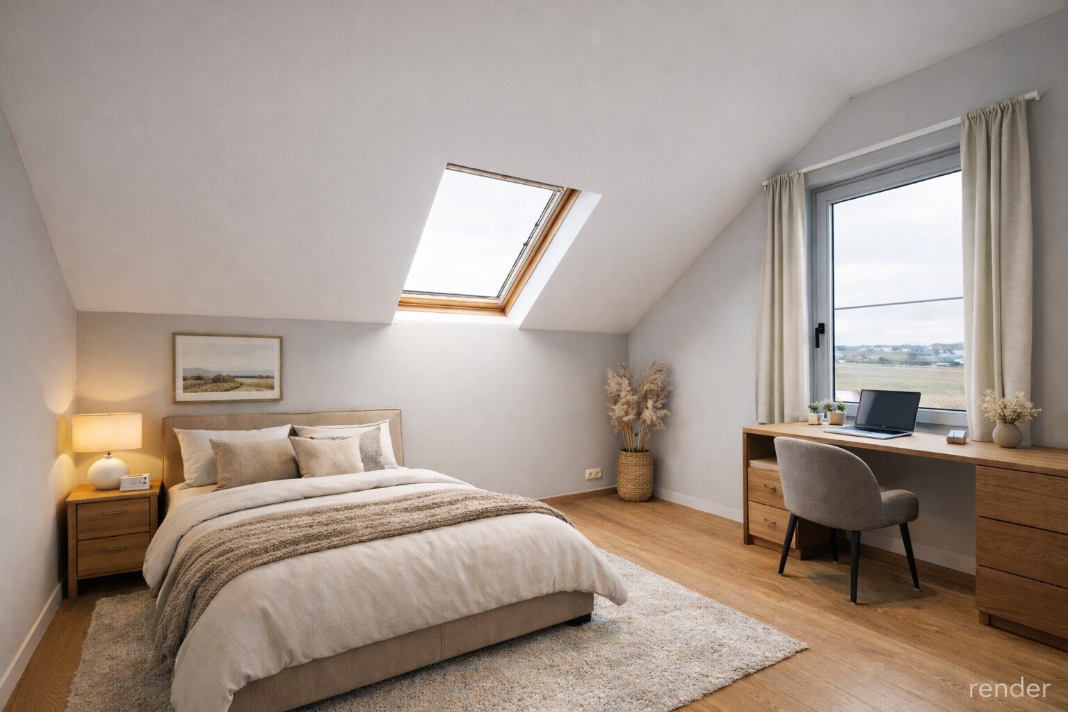 • 3 bedrooms (19.5 m², 11.66 m², 19.5 m² with air conditioning)