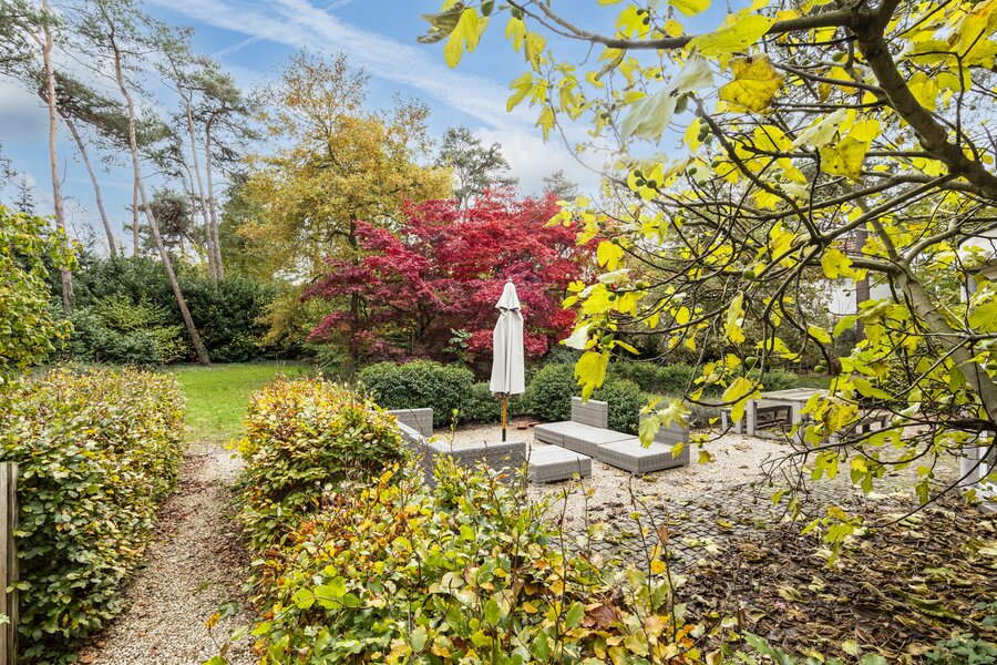Buitengebeuren: De tuin biedt volledige privacy en is (m.u.v. vooraan) volledig omheind. Het perceel is zuidgericht en de woning is mee gedraaid met de oriëntatie. Het zwembad (2019) is voorzien van zonnecollectoren en een warmtepomp. Er is een tuinhuis met de installatie voor het zwembad. Aan de voorzijde van de woning heeft u een carport voor twee auto's.
