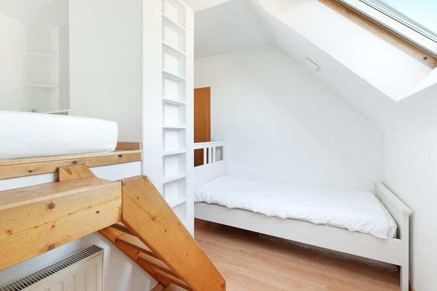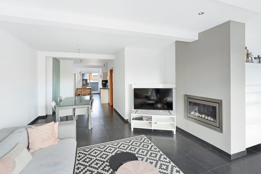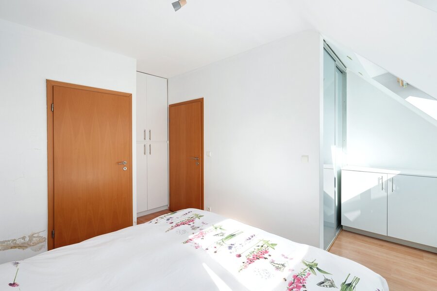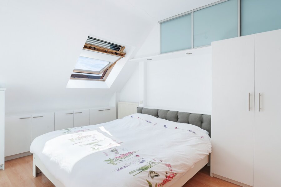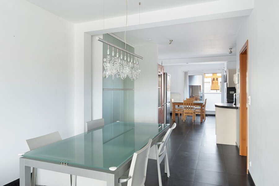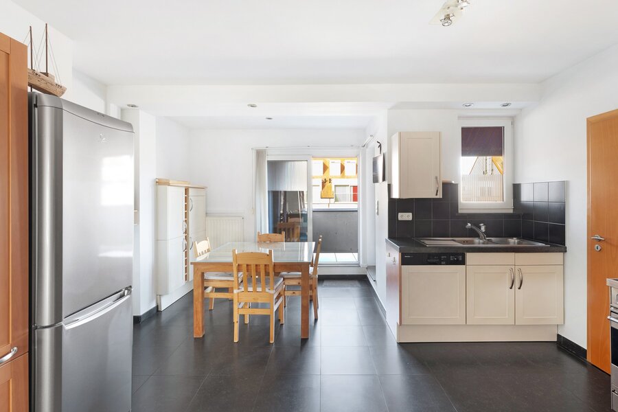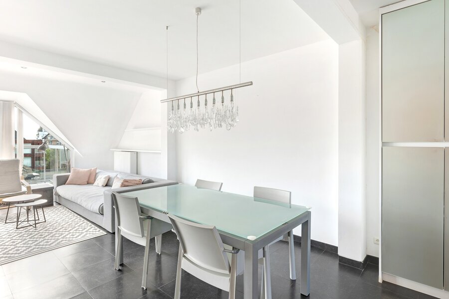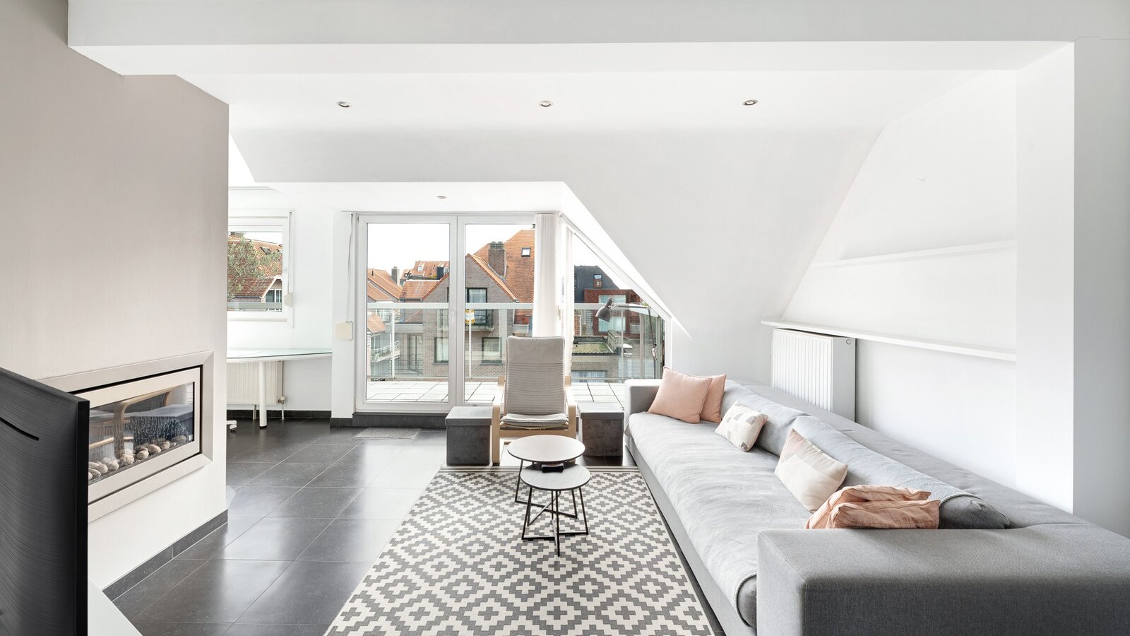 Duplexappartement van 125 m² met uitzonderlijke terrassen, gelegen op wandelafstand van de zee en de winkels. Indeling: inkomhal met vestiaire en gastentoilet. Ruime, lichtrijke woon- en eetkamer met bureau en toegang tot een zonnig terras aan zowel de voor- als achterzijde. Volledig uitgeruste keuken en douchekamer. Op de verdieping bevindt zich de hoofdslaapkamer met dressing. Badkamer met ligbad, douche, dubbele lavabo en toilet (aansluiting voor wasmachine en droogkast). Tweede slaapkamer met ruimte voor zowel een enkel als een dubbel bed. Contacteer Knokke Real Estate voor meer informatie of een bezichtiging.
