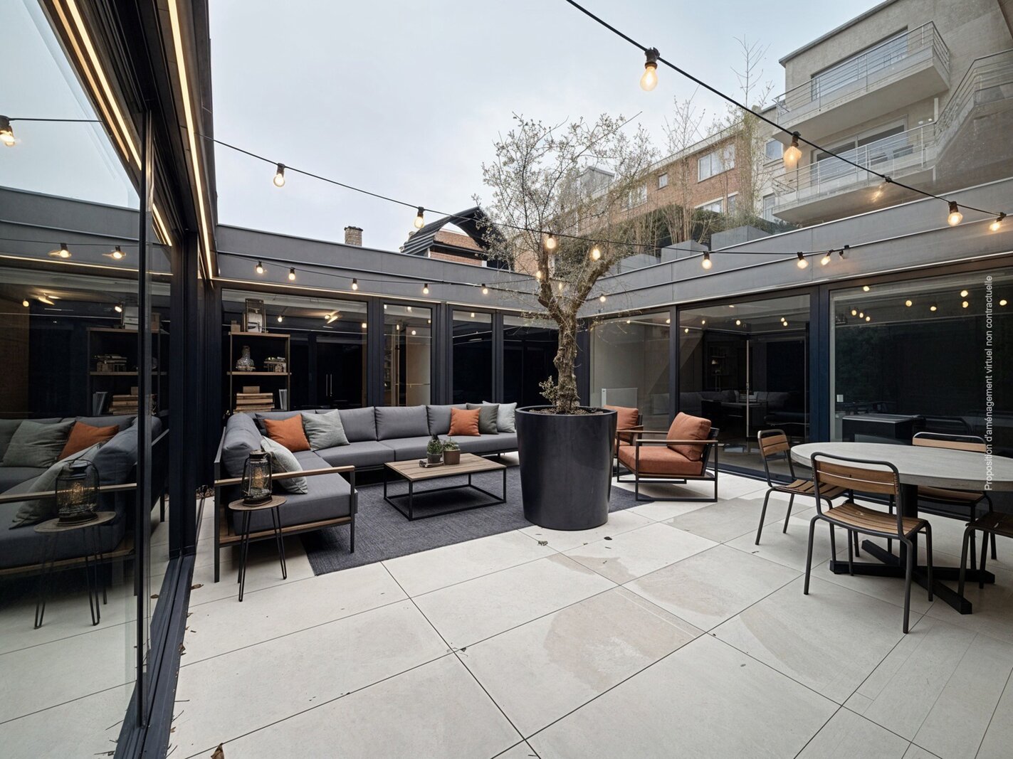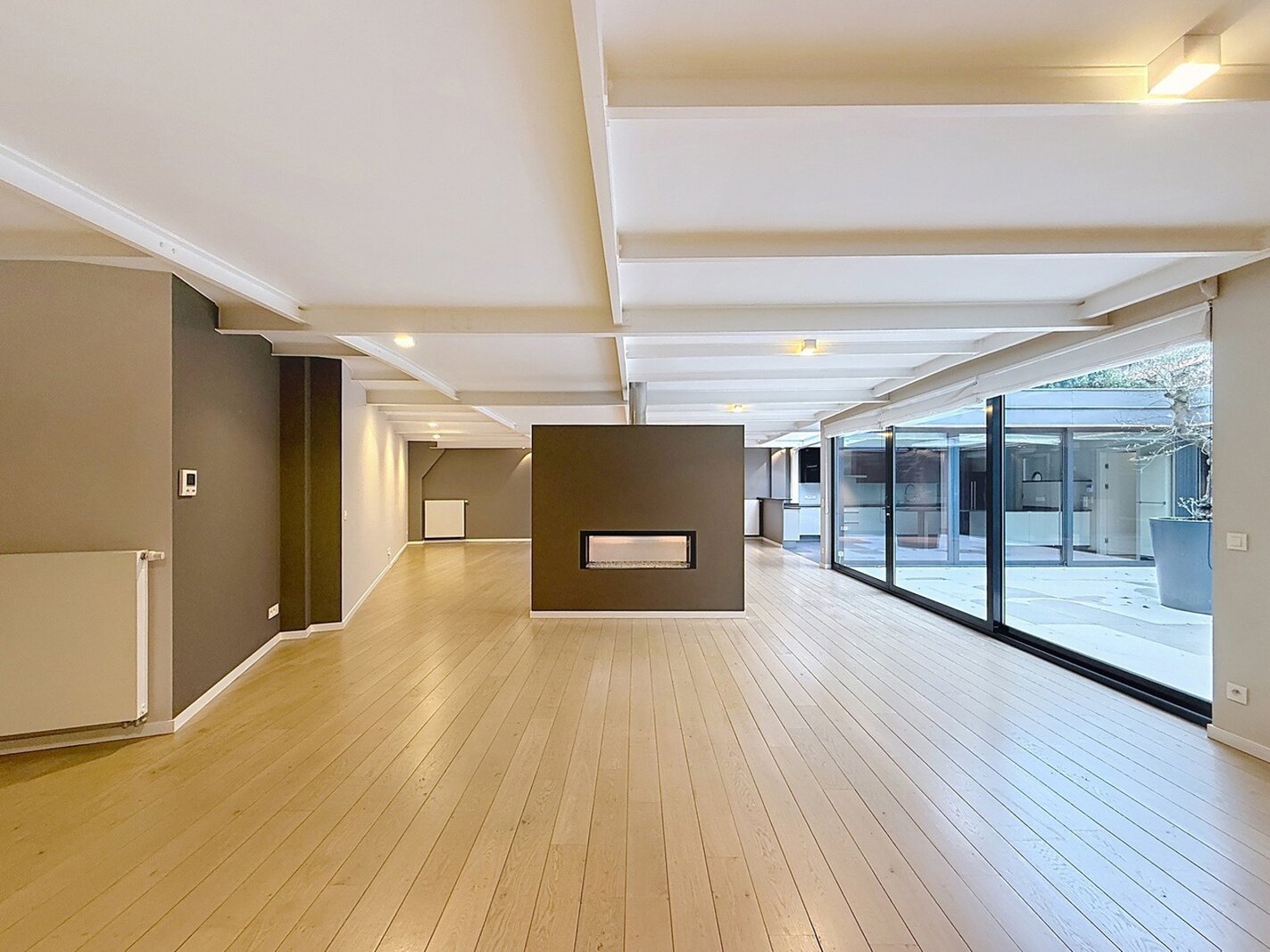 ETTERBEEK, a stone's throw from the European Quarter and easily accessible, this magnificent 325 m² loft with its ±34 m² interior terrace as its central feature is located near Place Saint-Pierre. It comprises an entrance hall with cloakroom and separate toilet, a large ±115 m² living room, and a fully equipped open-plan kitchen. The sleeping area consists of a bedroom with dressing room of ±40m² and shower room, a second bedroom with dressing room/bathroom of ±36m², a third bedroom with built-in cupboards of ±26m² and a fourth bedroom with storage space of ±16m² + cozy corner, and a separate shower room. A laundry area and cellar complete this property. Photovoltaic panels - water softener - alarm. Possibility of a corporate lease. A secure parking space is available.