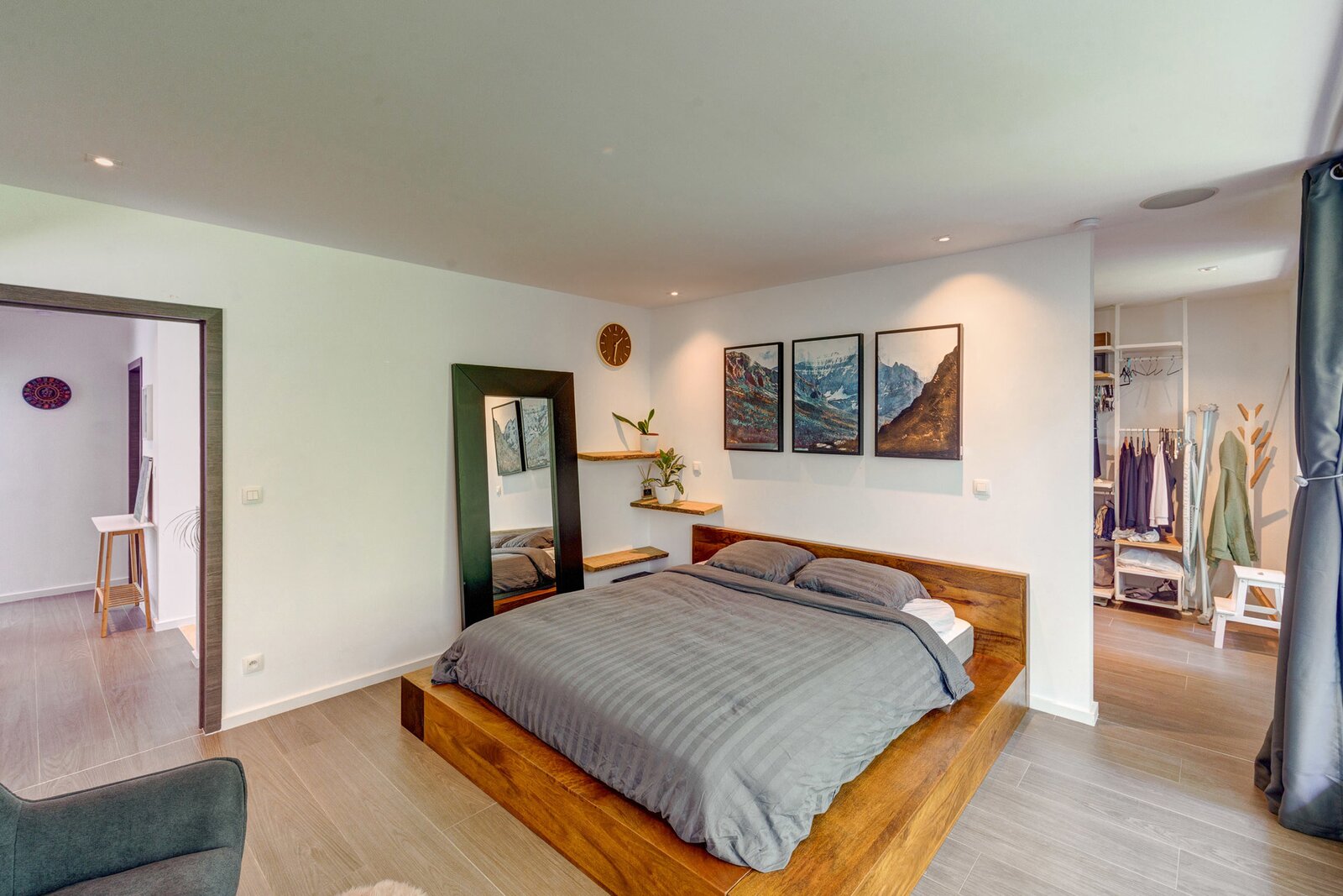 De villa beschikt over drie ruime slaapkamers. De master suite is een echte droom: een eigen balkon, een royale dressing en een ensuite badkamer met jacuzzi, dubbele wastafel en luxueuze inloopdouche.