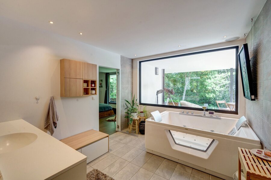 Duurzaamheid en luxe gaan hier hand in hand. Dankzij zonnepanelen, geothermische warmtepomp, driedubbele beglazing en uitstekende isolatie behaalt deze villa een bijna-energieneutrale score (EPC E6). Slimme technologie tilt het wooncomfort naar een hoger niveau: van smart lighting en een slim slot tot een high-end audiosysteem met 11 ingebouwde speakers, een whirlpoolbad, een infrarood douche-sauna en ultrasnel internet.