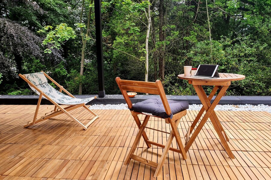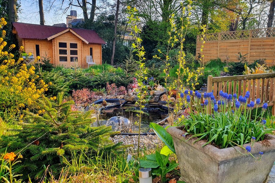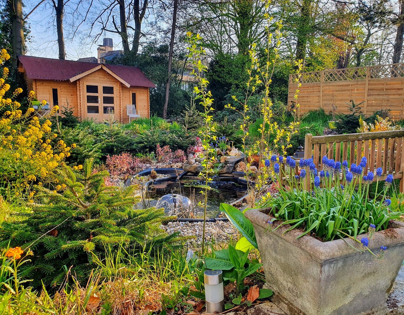 De tuin is een oase van rust. Met drie loungeplekken, een vijver met fontein, een groot terras en een volledig aangelegde tuin geniet je hier elk seizoen van de buitenlucht. Twee overdekte staanplaatsen en een tuinhuis achteraan het perceel zorgen voor extra comfort.