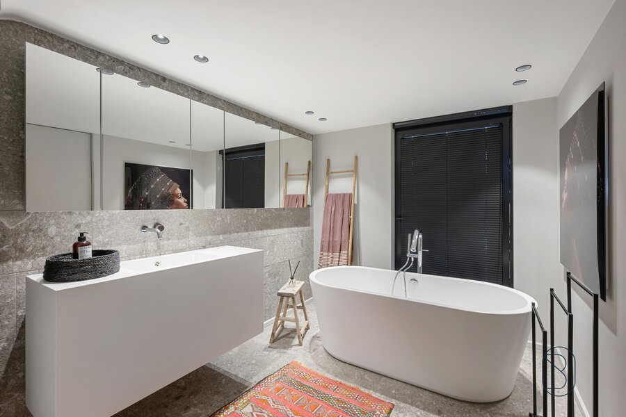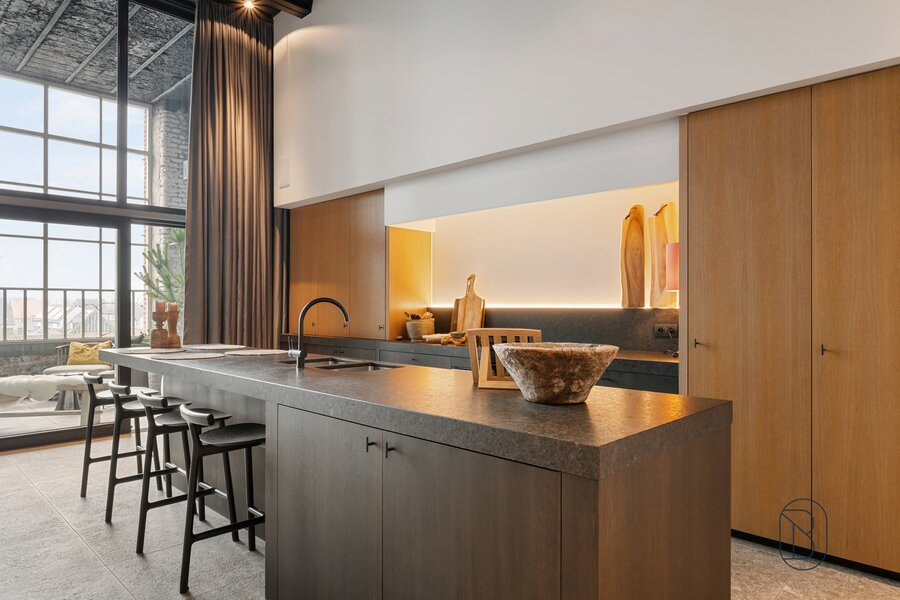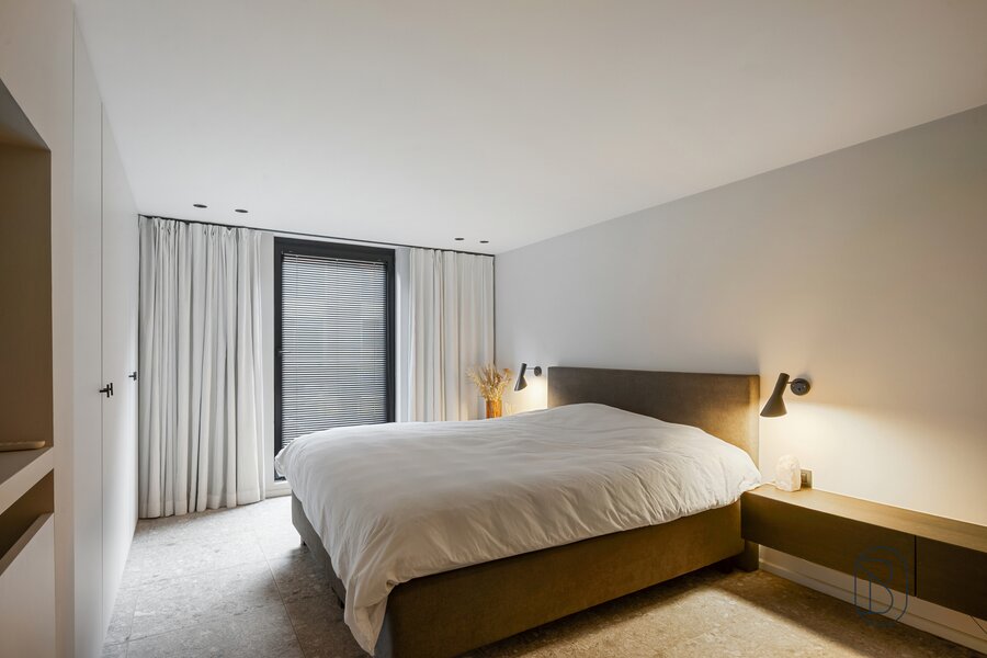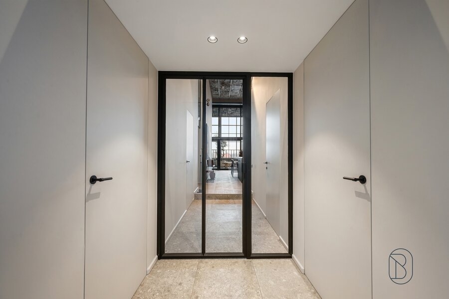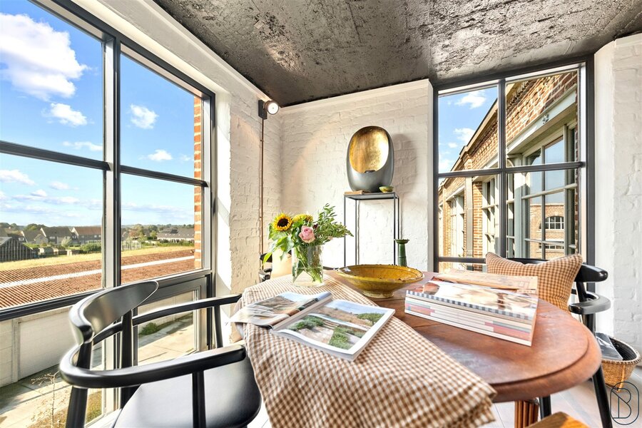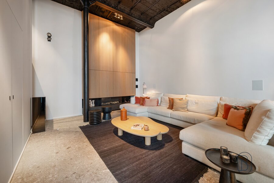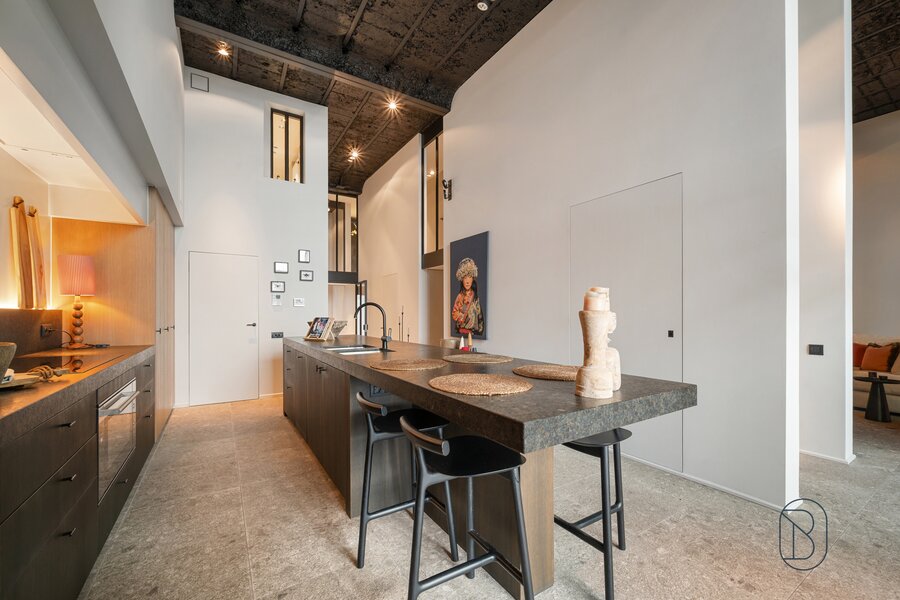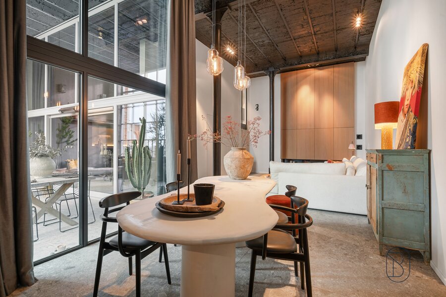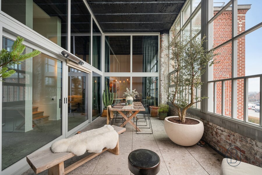 UNIQUELY finished EXCLUSIVE LOFT with 2 bedrooms and private bathroom, extra office space and charming covered TERRACE. You will feel like you are in another world when you enter this unique LOFT (the best materials, custom cabinets, TOP FINISH!). LAYOUT: entrance, toilet, laundry/storage room, technical room, LUXURY KITCHEN equipped with the best appliances and ISLAND, beautiful covered TERRACE (extra dining area and sitting area), cozy living room with gas fireplace, nice wine bar, extra desk space/reading corner, a master bedroom with private bathroom, and on the first floor a master bedroom with its own luxury bathroom and dressing. Additional garage and storage room purchase: 30,000 euros. UNIQUE OPPORTUNITY for those looking for ULTIMATE LUXURY. Visit by appointment with IMMO BEGUIN: info@immobeguin.be