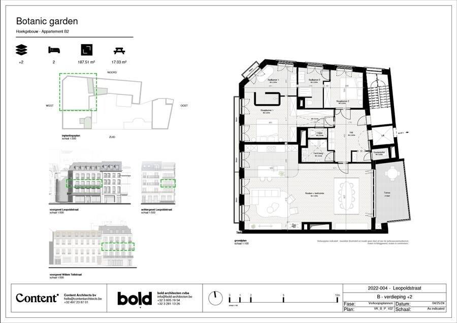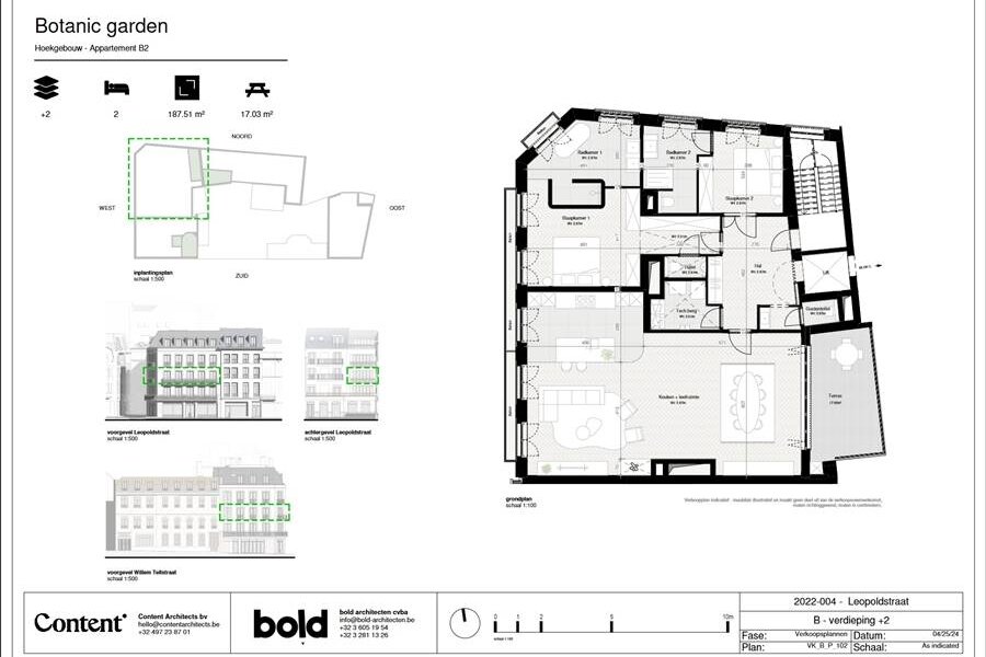 Schitterend hoekappartement (ca 190m²) met frontaal uitzicht op Den Botaniek * Ontdek het meest prestigieuze nieuwbouwproject in het historisch centrum van Antwerpen, "Botanic Garden" subliem afgewerkt * baadt in het licht * Plafondhoogte van 2,87m, 15 meter gevelbreedte, grote ramen in franse stijl + balkon, leefruimte van 85m² op massief eiken visgraatparket, high-tech keuken + eiland ... dit alles met een fantastische view op het park * Terras aan de leefruimte van ca 17m² * twee mastersuites + 2 luxe badkamers * Vanuit de garage op -1 rechtstreekse toegang appartement * Verkoop onder 21% BTW stelsel - Wet Breyne