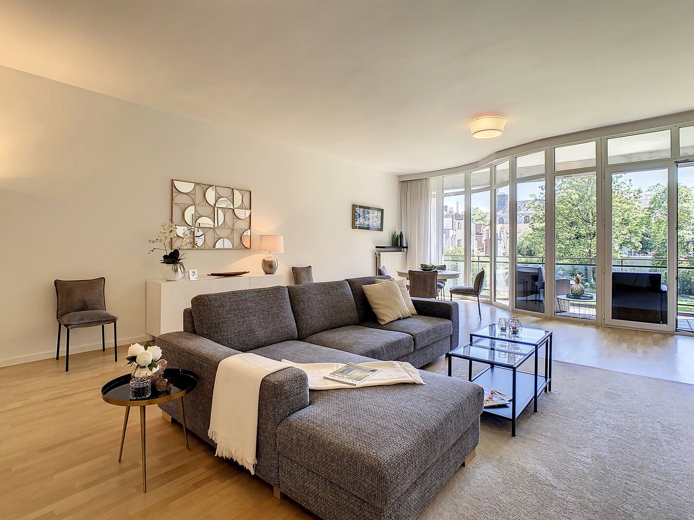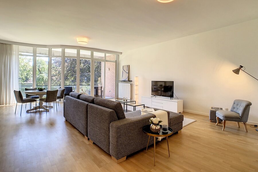 Between the prestigious Avenue Louise and the pretty Châtelain district, magnificent furnished apartment with a total surface area of ± 178 m² in a luxury building. It consists of an entrance hall with a cloakroom, a spacious and bright living room (± 50 m²), a fully equipped kitchen, 3 beautiful large bedrooms (± 16 m², ± 15 m² and ± 12 m²), a bathroom, a shower room and a laundry room. Beautiful terrace (± 6 m²) facing South East. Possibility of renting a parking space at an additional cost (150 €/month). Charges: 170 € /month (Provision for the maintenance of common areas and the elevator). PEB C. To see without further delay!!