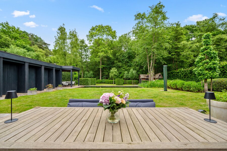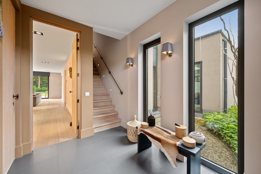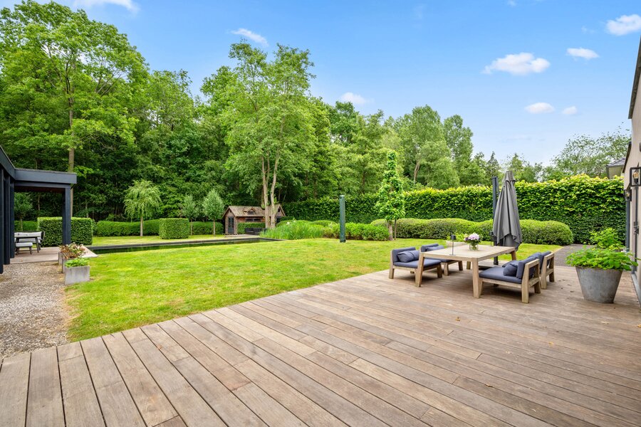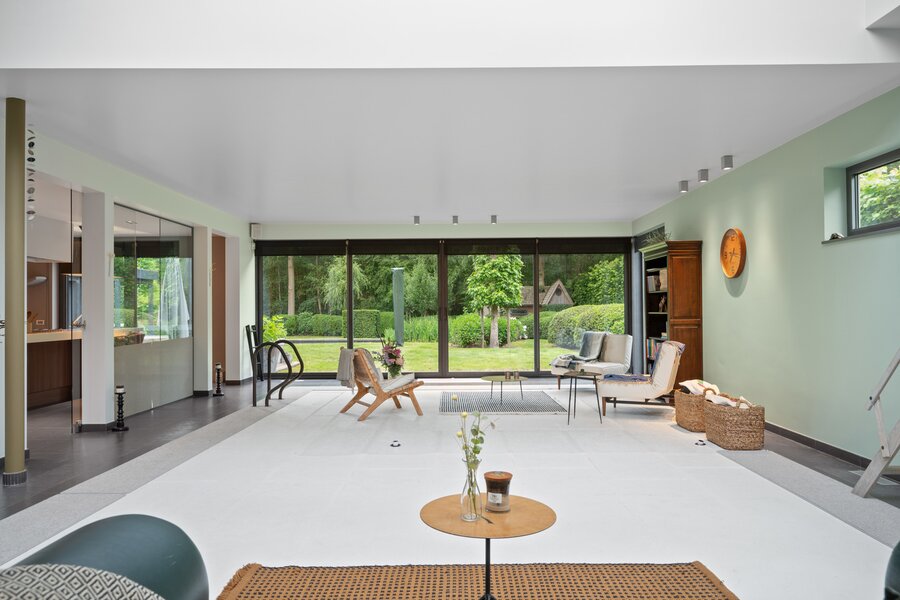 Deze uitzonderlijke villa is gelegen in een rustige, doodlopende straat met vrij uitzicht op groen, in de nabijheid van de golf van Keerbergen.